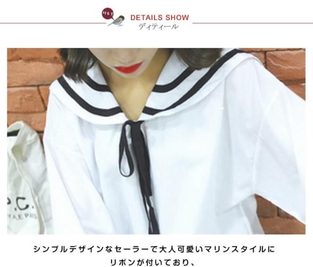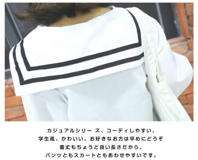 セーラー襟でマリン気分に即チェンジ!ブラウス Tシャツ カットソー 海軍風セーラー風 長袖