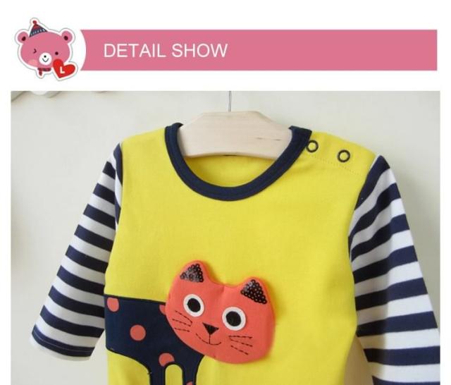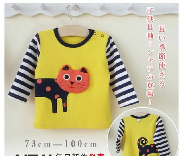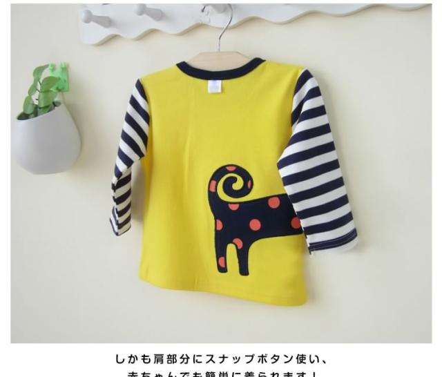 | 長い季節使える子供長袖tシャツの登場!フロント部分に超キュートなネコ君模様で愛猫者必見アイテム!しかも肩部分にスナップボタン使い、赤ちゃんでも簡単に着られます!どんなボトムスとの相性も抜群の長袖トップスをぜひお試してください! | |