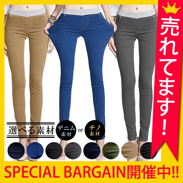 レギンスパンツ レディース スキニーパンツ ストレッチ 大きいサイズ ウエストリブゴム デニム チノ(ゆうパケット送料無料)[郵3]^sh-426^