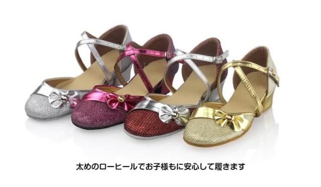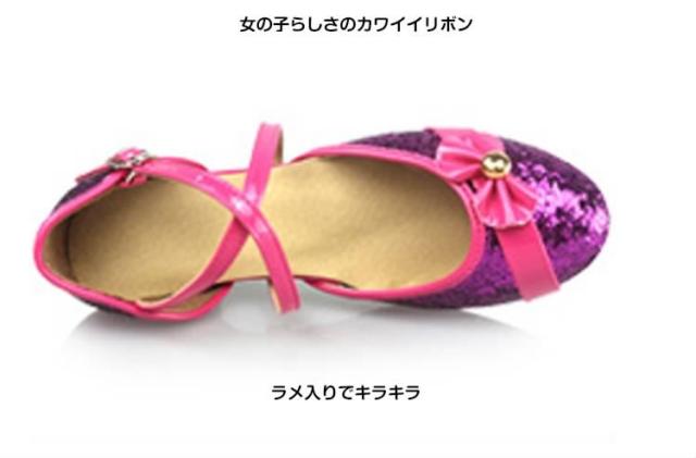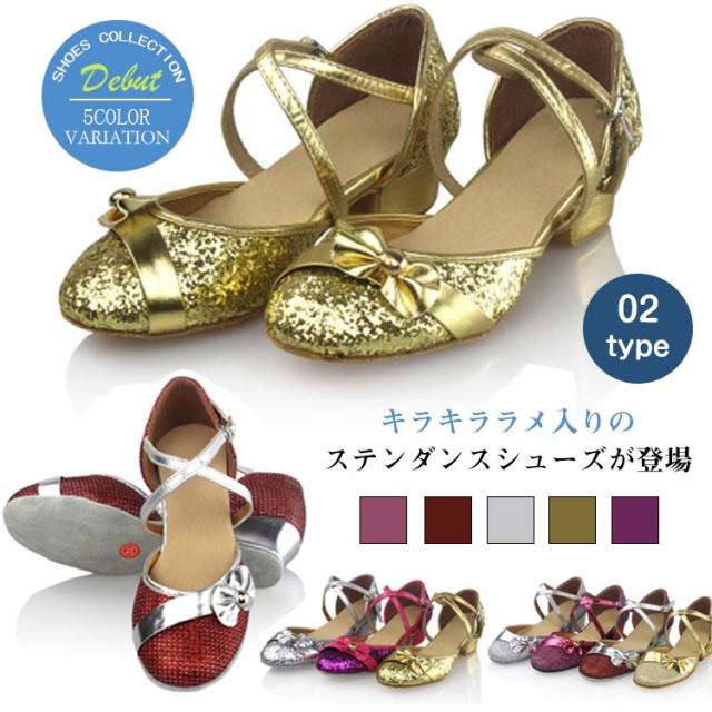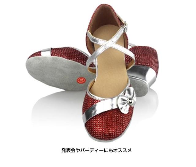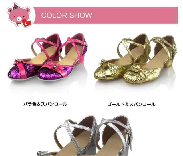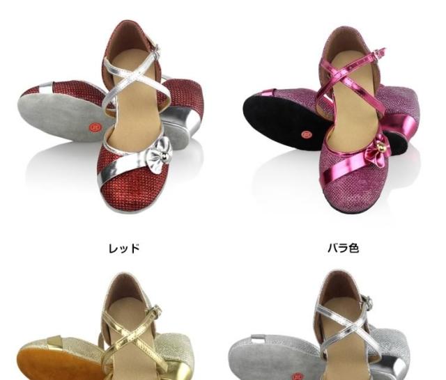 | キラキララメ入りのステンダンスシューズが登場適度な滑りやすさで動きやすい太めのローヒールでお子様もに安心して履きます発表会やパーディーにもオススメ足首周りに合わせてベルトの穴を調整して、サイコウの履き心地を◎ | |