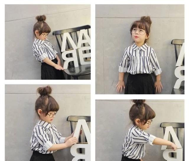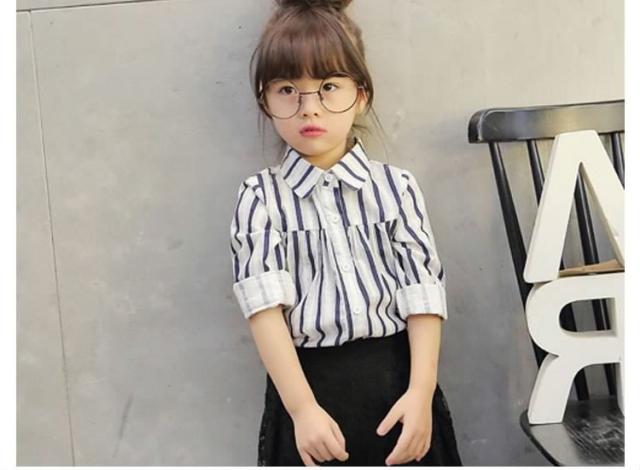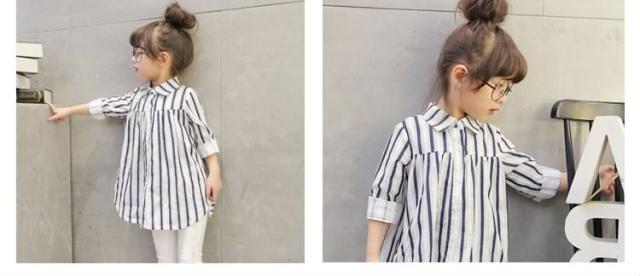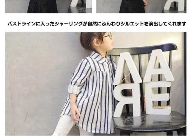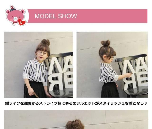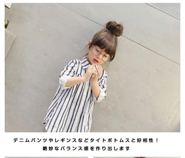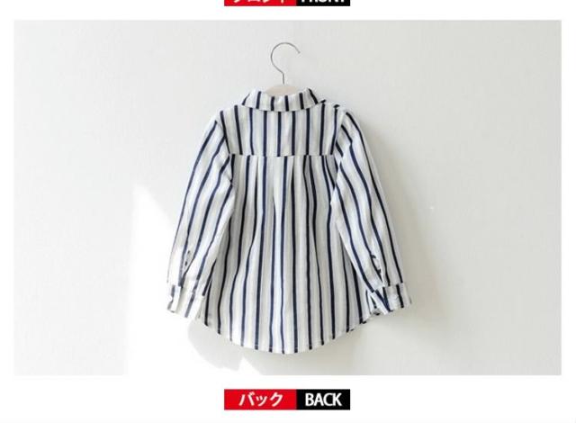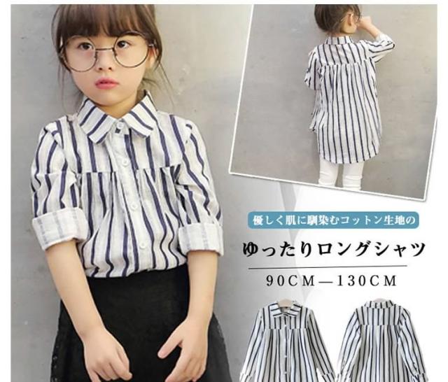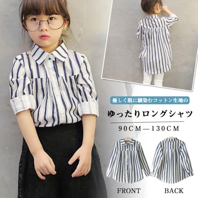 子供服 ブラウス ゆったり ストライプ柄 シャツ 長袖ブラウス 長袖 コットン フリル ロング丈 通気性 吸汗 キッズ 子供 通学 通