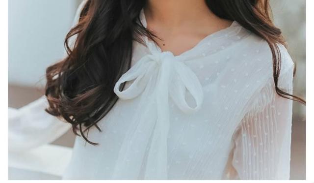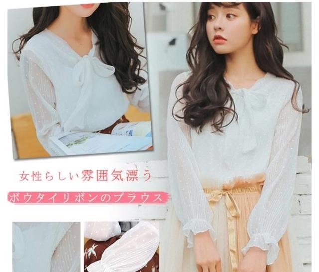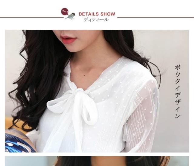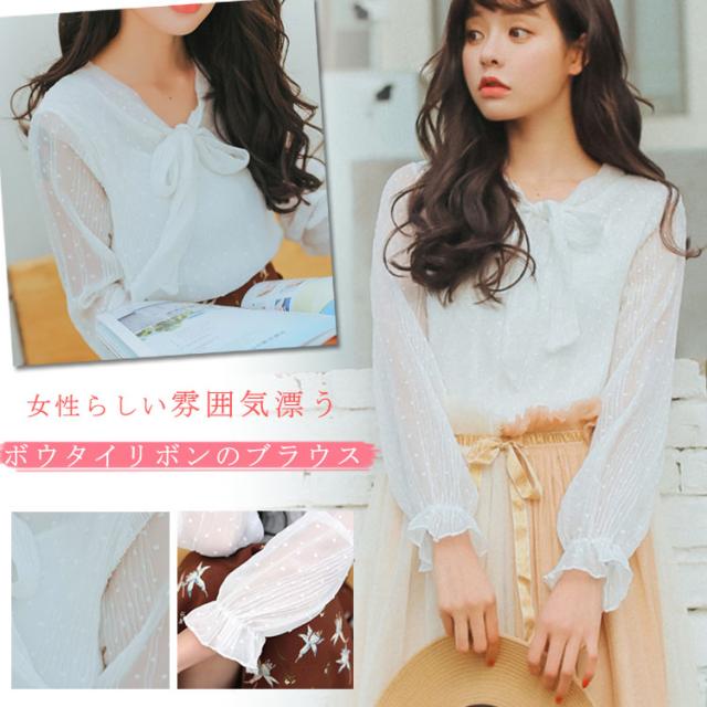 ボウタイブラウス シャツブラウス シフォンブラウス blouse リボンタイ ボウタイ Yシャツ 無地 大きいサイズ 長袖 透け