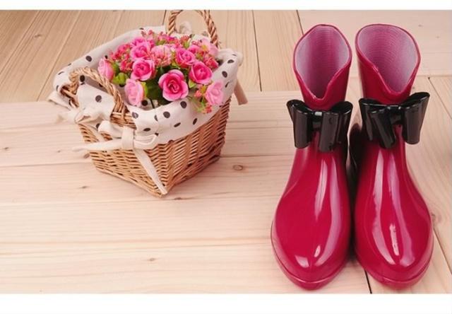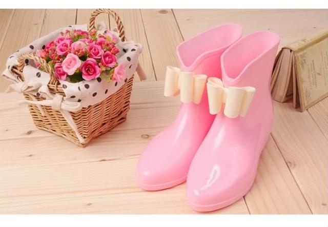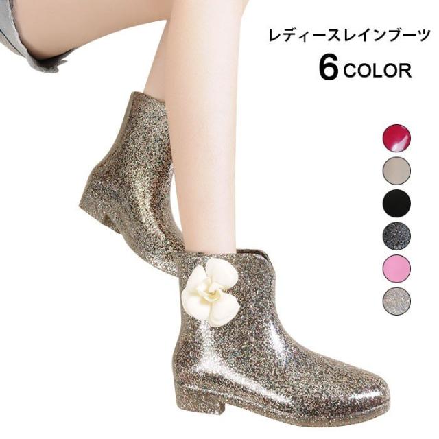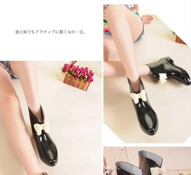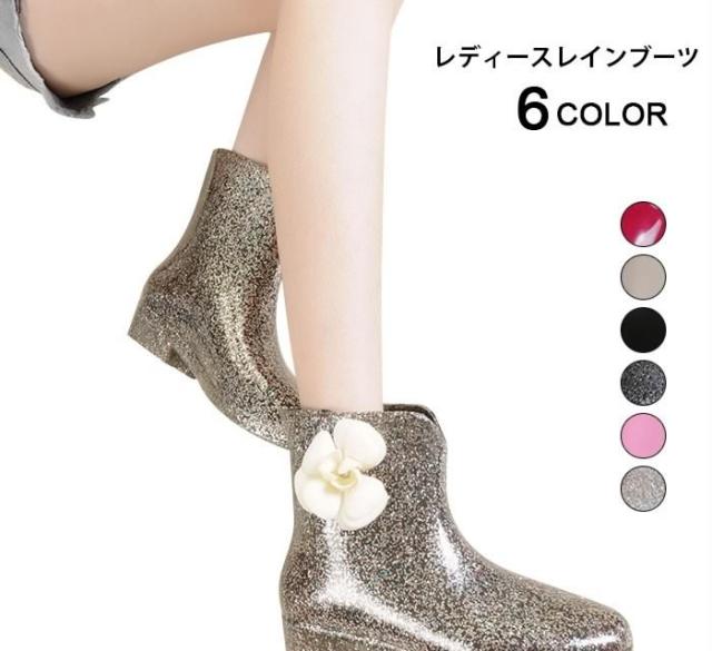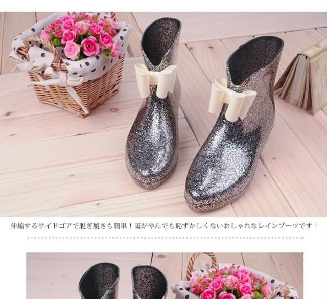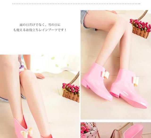 送料無料女のレインシューズレディースレインブーツ雨靴晴雨兼用梅雨長靴蝶結びリボン付きボー付き花梅雨 ローヒール