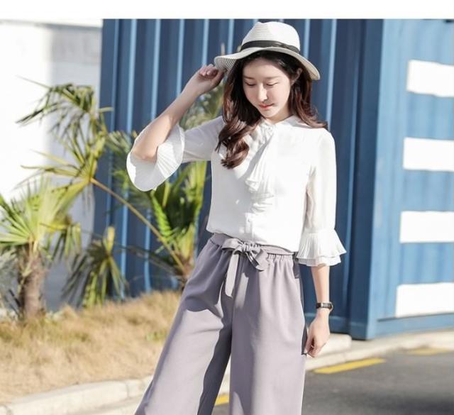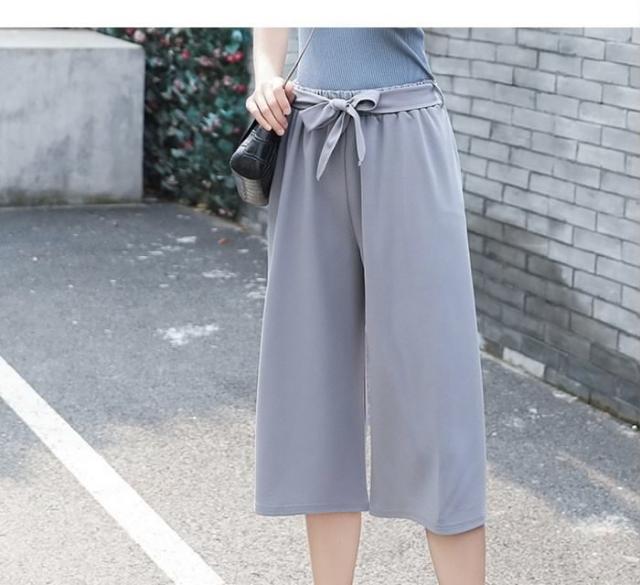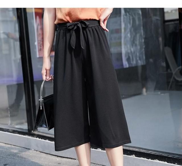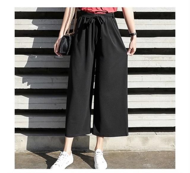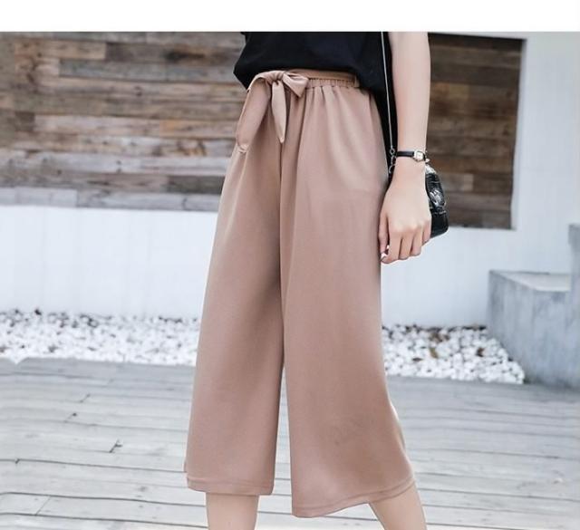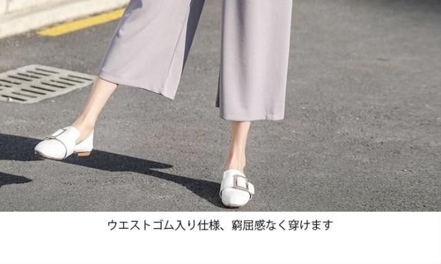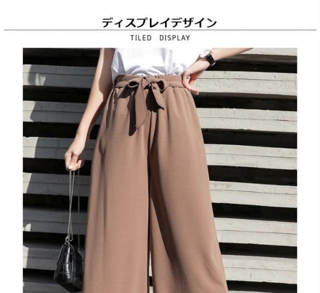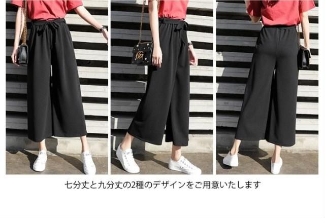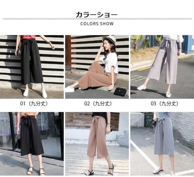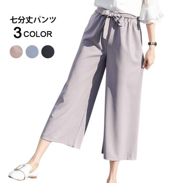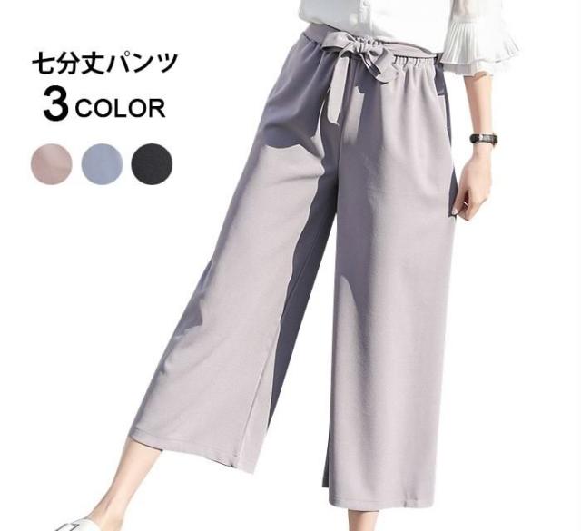 送料無料レディースワイドパンツ七分丈パンツシフォンパンツガウチョパンツ九分丈パンツウエストリボンウエストゴムゆったり無地キレイめ