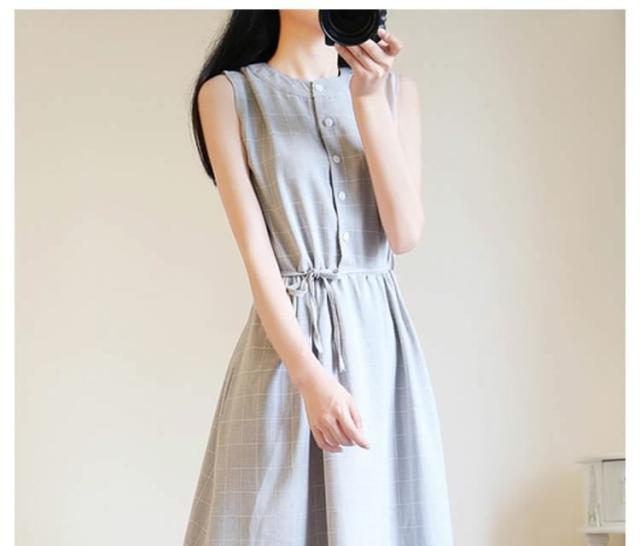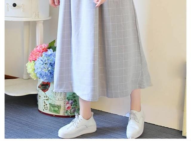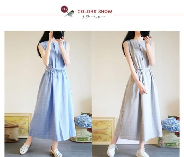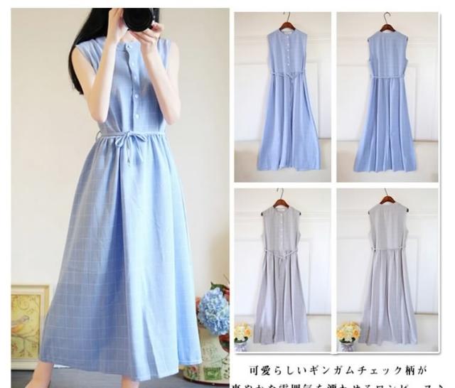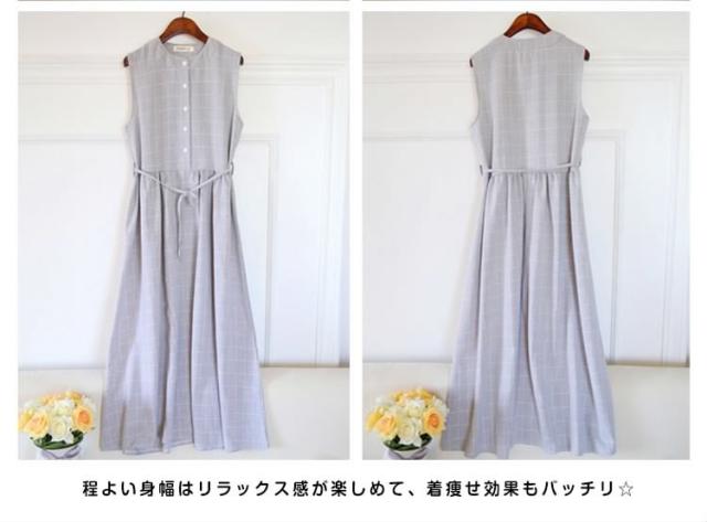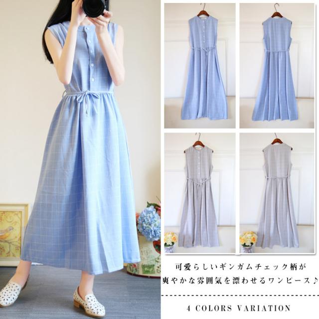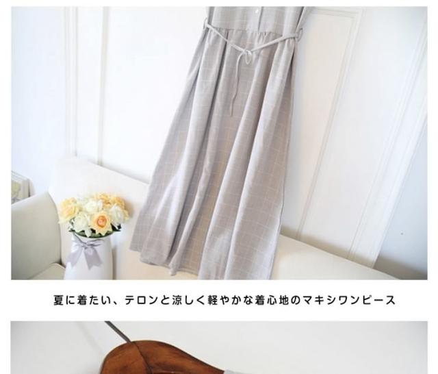 夏ワンピース/ギンガムチェックワンピース/マキシワンピース/ロングワンピース/レディース/綿麻ワンピース/きれいめ/マキシ丈/ロング丈/