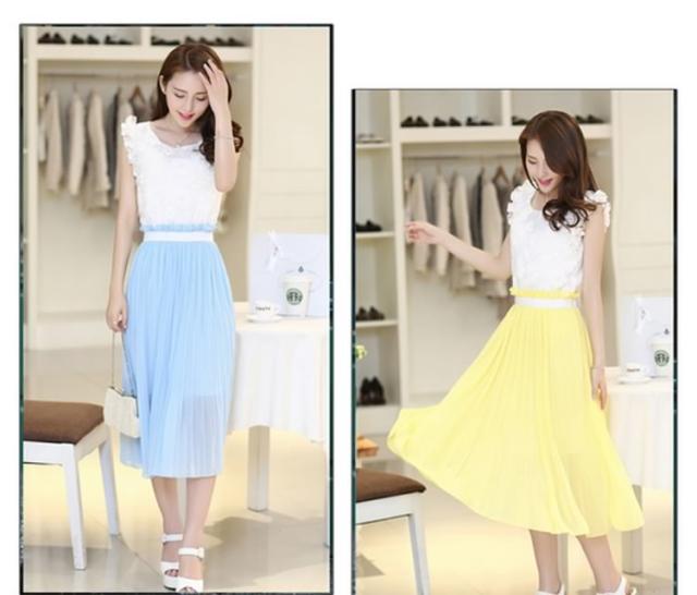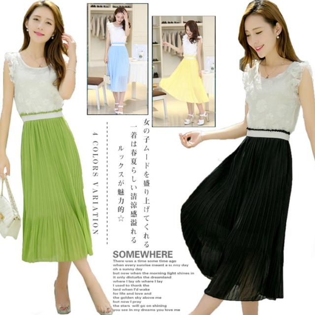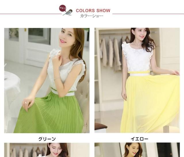 シフォンワンピース レディース 切り替えワンピース プリーツワンピース ドッキングワンピース マキシ丈 ロング ノースリーブ シフォン