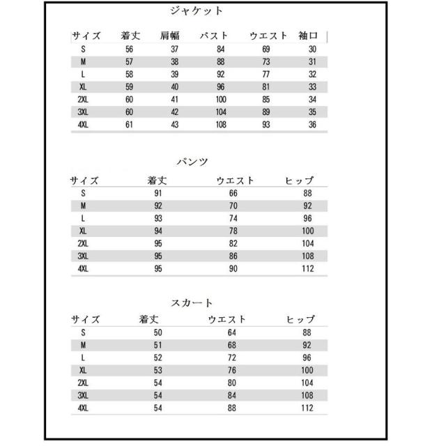 | サイズ | ジャケット+パンツ ジャケット+スカート |