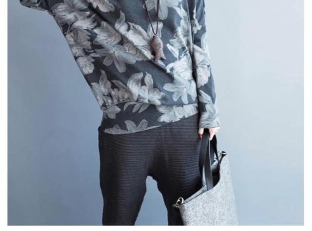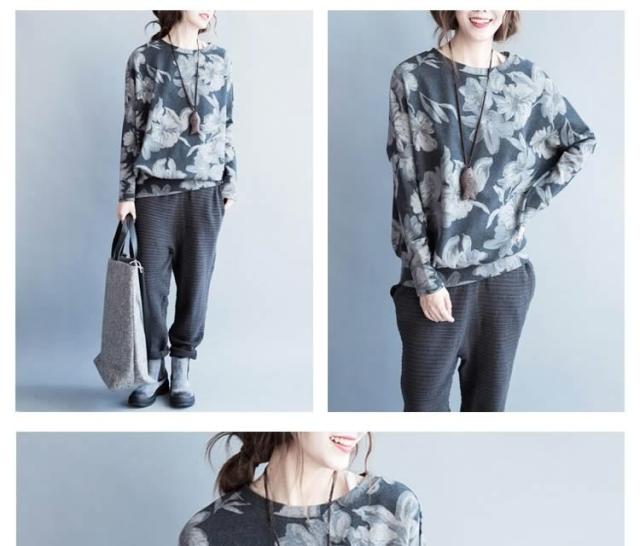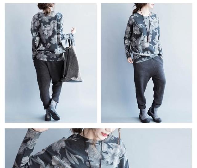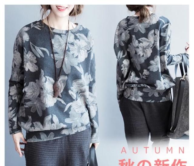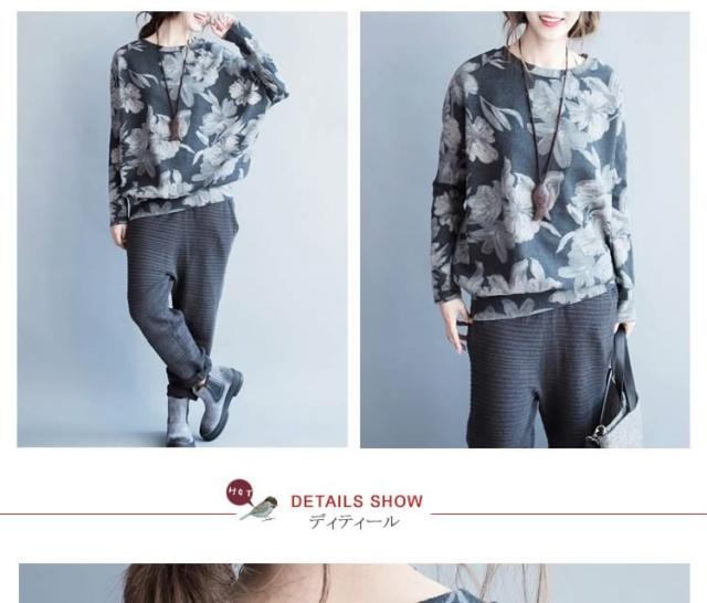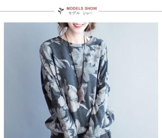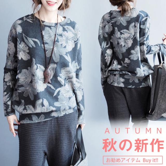 長袖Tシャツ 花柄 長袖 Tシャツ フラワープリント Uネック クールネック フェミニン 春夏 レディース