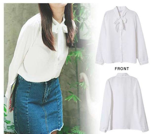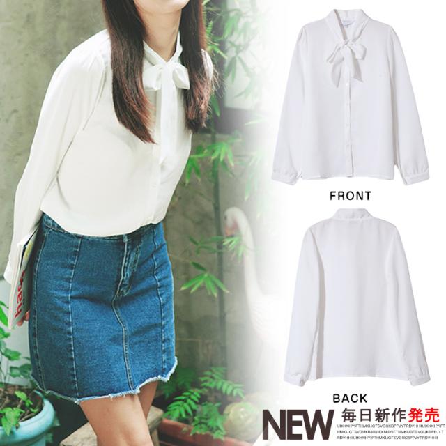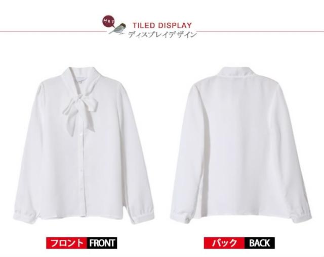 シフォン 長袖シャツ ボウタイ付き シフォンブラウス