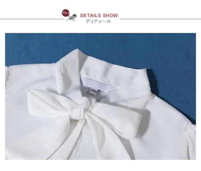 シフォン 長袖シャツ ボウタイ付き シフォンブラウス シフォンシャツ 長袖ブラウス エレガント 春夏 レディース