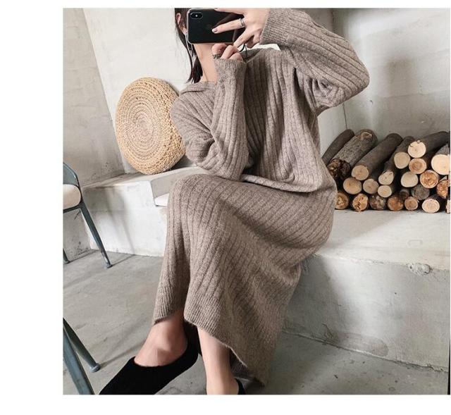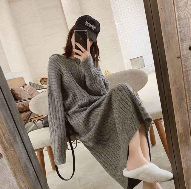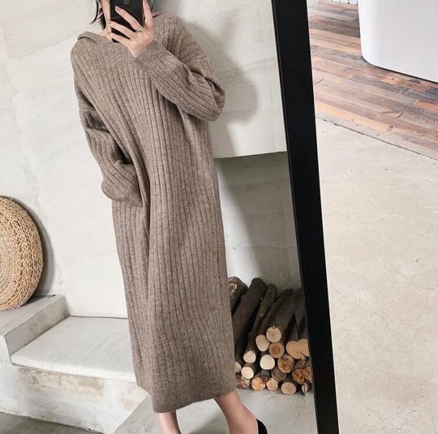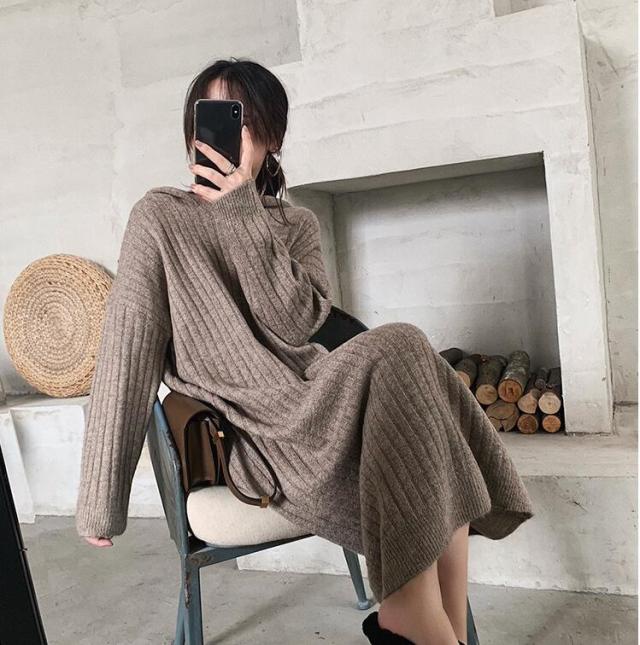 2019秋冬の新作厚手/韓国ファッション 大人い ロングワンピース ニットワンピース /ロングワンピース ニット/着?
