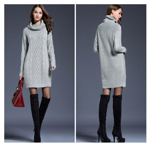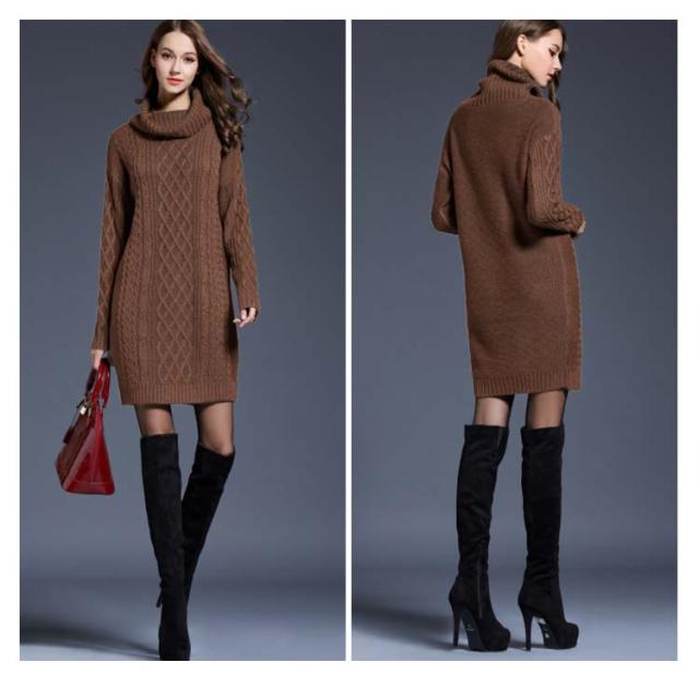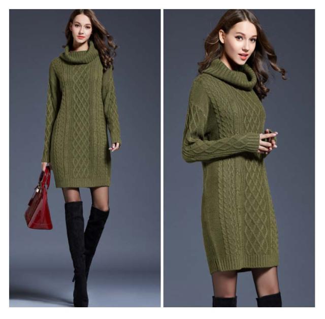 全6色×6サイズ!オフタートルニットワンピース ケーブル編み ロングニット ニットワンピース チュニック ニット セーター ロングニット タートルネック オフタートル 秋 秋冬 大きサイズ