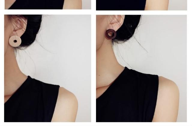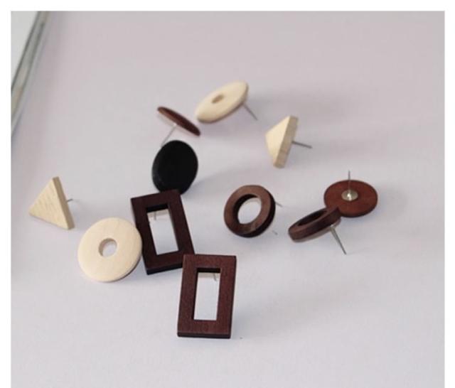 ウッド ピアス 三角モチーフ トライアングル 丸い