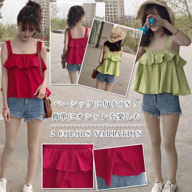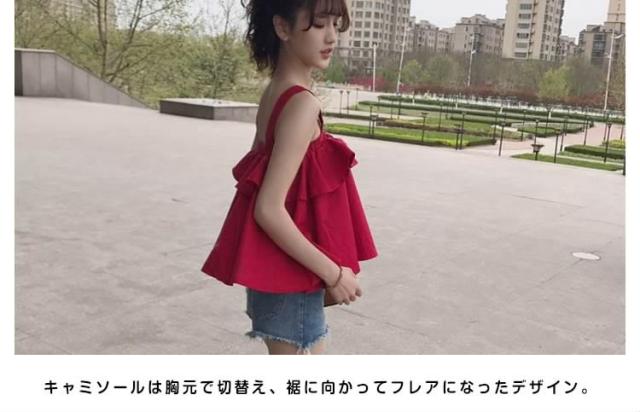 簡単にオシャレを楽しむ。フレアキャミソール ブラウス レディース キャミソール フリル フレアトップス チラ見せ 可愛いい キャ
