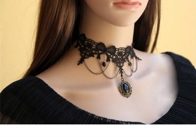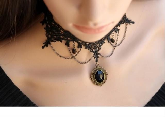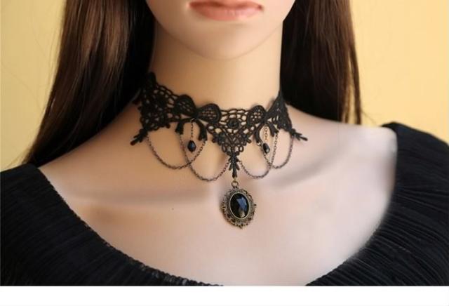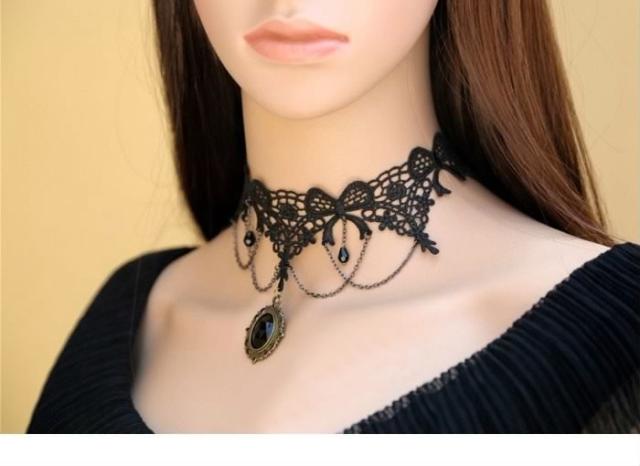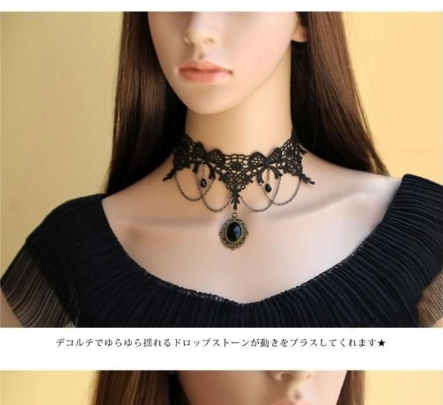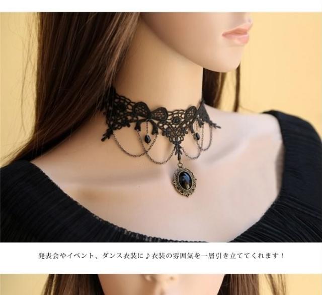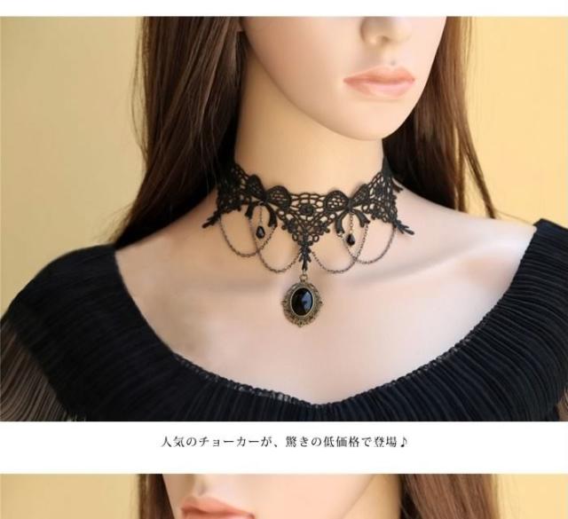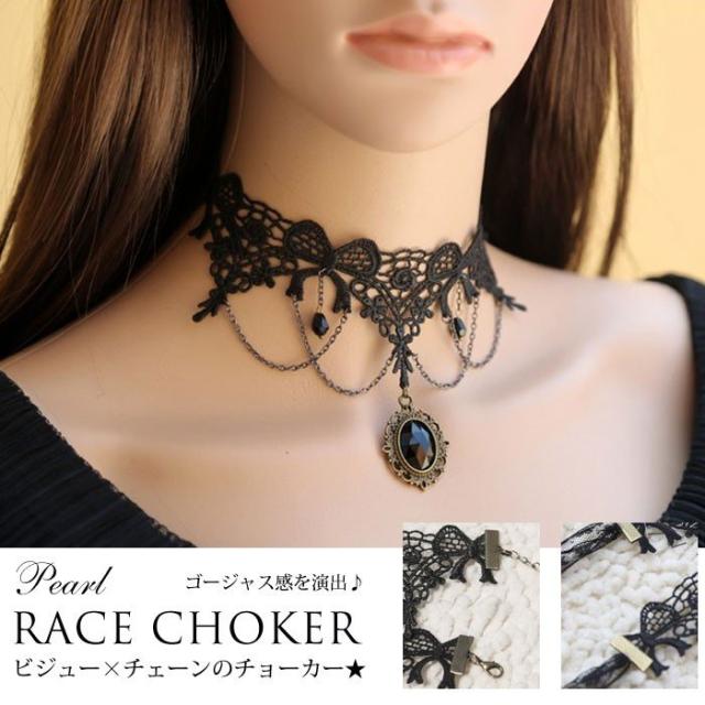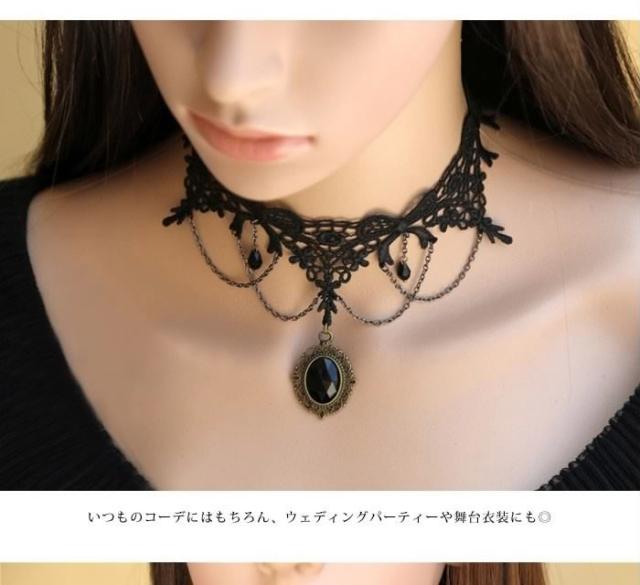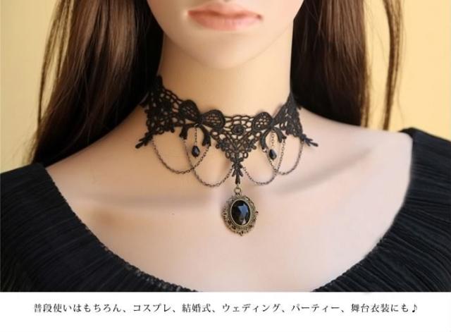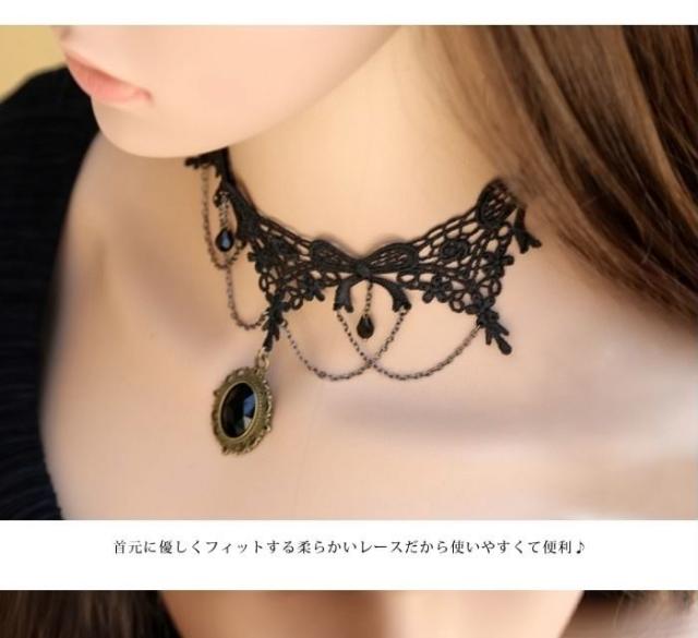 送料無料チョーカービジュー×チェーンロリータレースチョーカーチョーカーゴスロリゴシックレースハロウィンネックレスパーティーコスプ