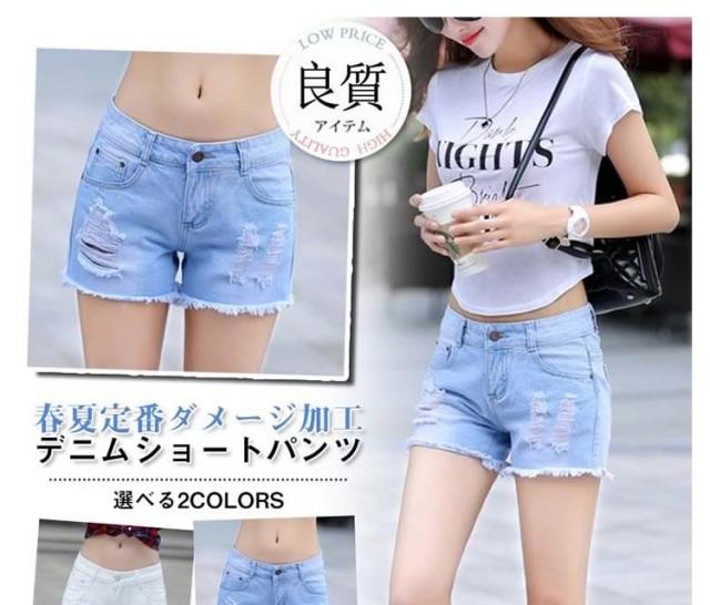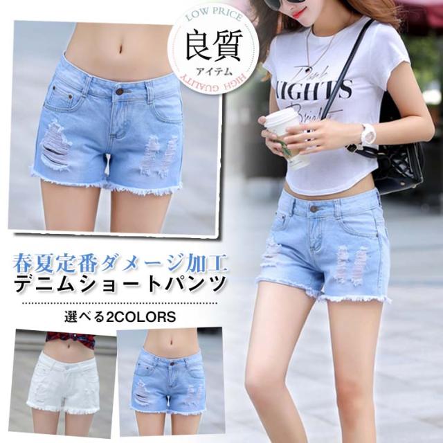 ホワイトデニム ショートパンツ ダメージデニム デニムショートパンツ ショーパン デニム ベーシック ダメージ加工 デニム ショート