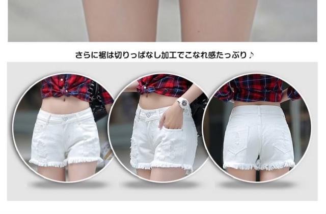クラッシュショーパン デニム ショートパンツ レディース デニム おしゃれ 白 ショーパン