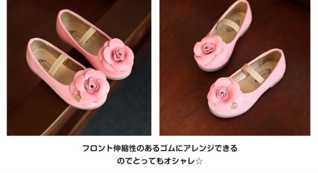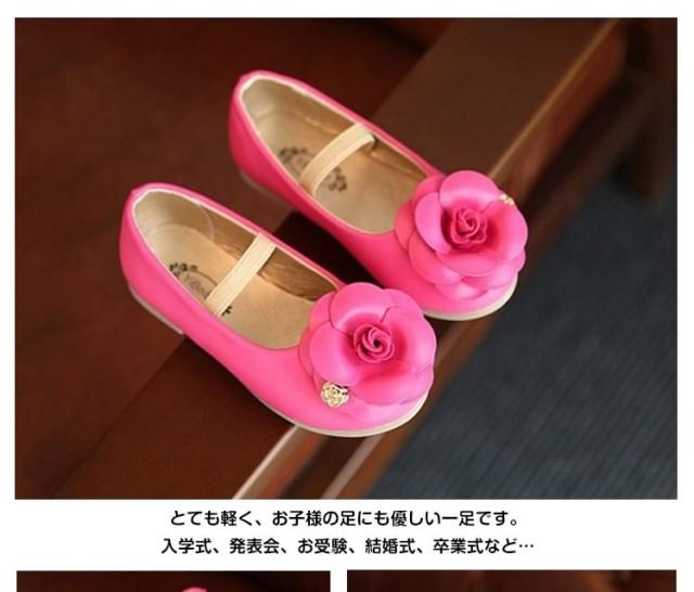 | 人気の子供フォーマルシューズが登場しました!フロントに大きめのフラワーの付いた可愛いデザインが素敵♪フロント伸縮性のあるゴムにアレンジできるのでとってもオシャレ☆とても軽く、お子様の足にも優しい一足です。入学式、発表会、お受験、結婚式、卒業式など…いろいろな行事に幅広くご使用頂けます! | |