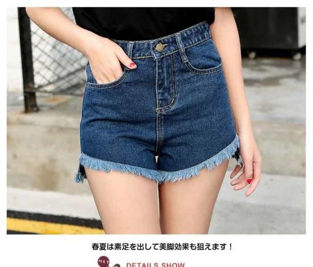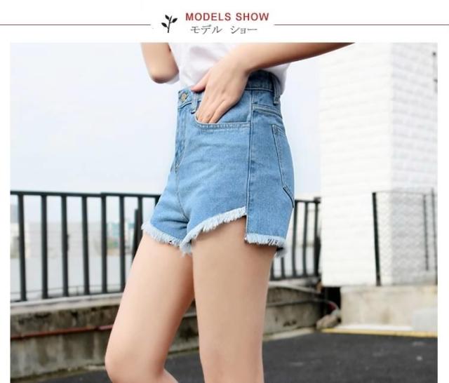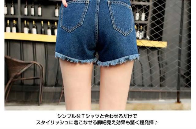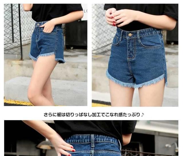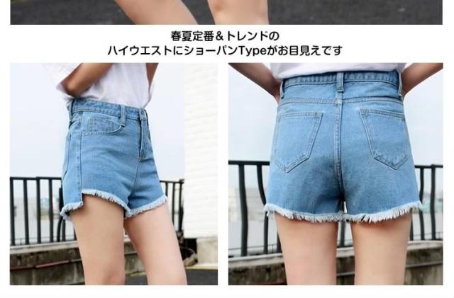 送料無料ハイウエストデニム ショートパンツ ダメージデニム デニムショートパンツ ショーパン デニム ベーシック クラッシュ加工ZOK