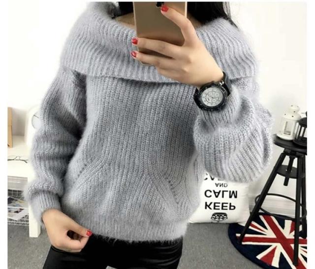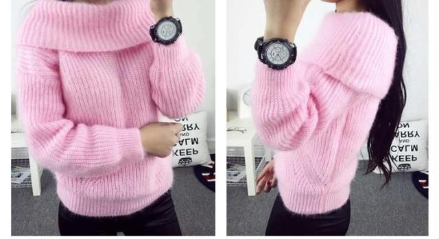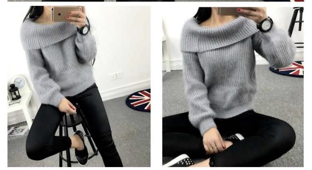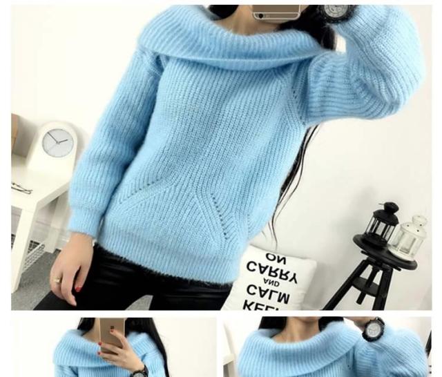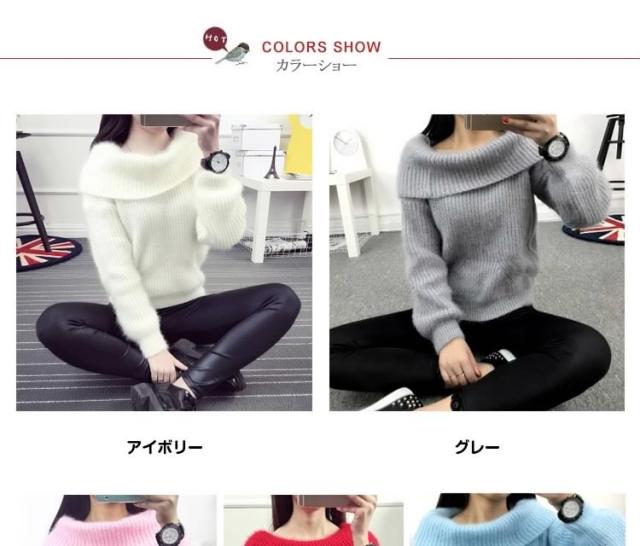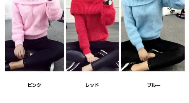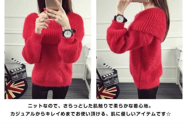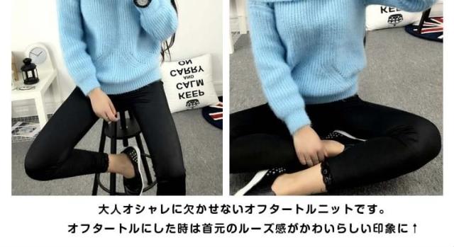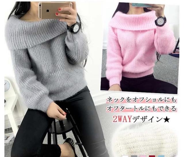 2WAYオフタートルニット オフショルダー ニットトップス プルオーバー オフタートル