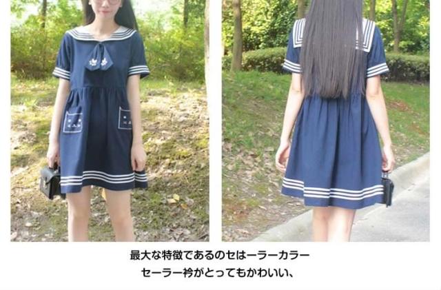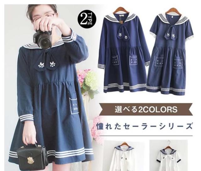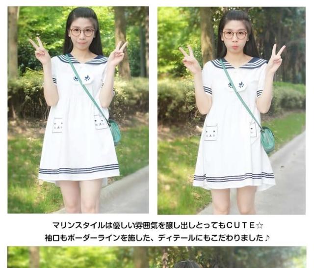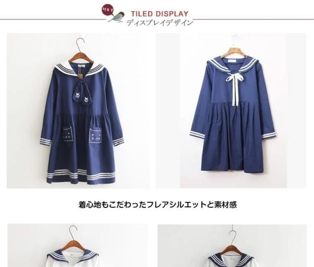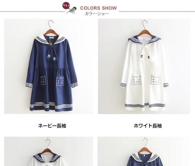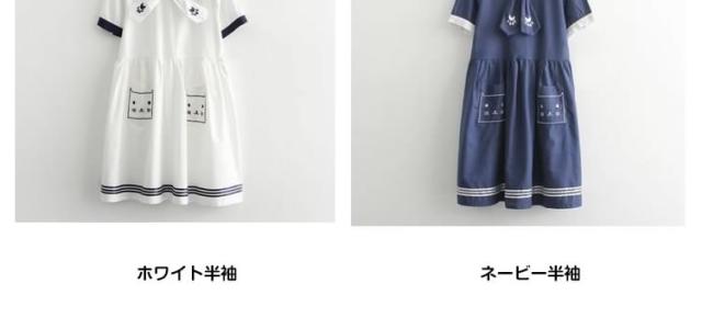秋新作 半袖&長袖選べる!ワンピース マリン風 セーラー風ワンピース セーラー ワンピース セーラー服 ワンピ 長袖 セーラーカラー セ