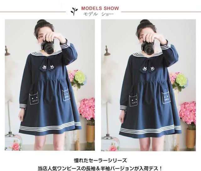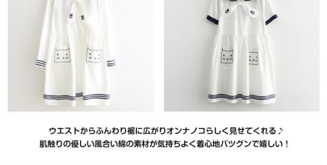 | 憧れたセーラーシリーズ当店人気ワンピースの長袖&半袖バージョンが入荷デス!踊りたくなるようなひらひら感でフェミニンに演出。最大な特徴であるのセはーラーカラーセーラー衿がとってもかわいい、マリンスタイルは優しい雰囲気を醸し出しとってもCUTE☆袖口もボーダーラインを施した、ディテールにもこだわりました♪着心地もこだわったフレアシルエットと素材感ウエストからふんわり裾に広がりオンナノコらしく見せてくれる♪肌触りの優しい風合い綿の素材が気持ちよく着心地バツグンで嬉しい! | |