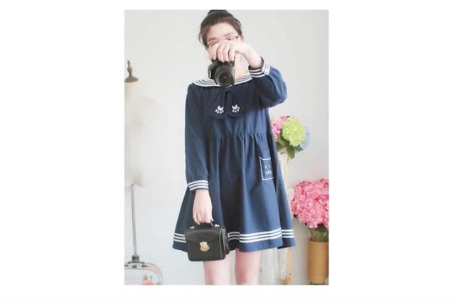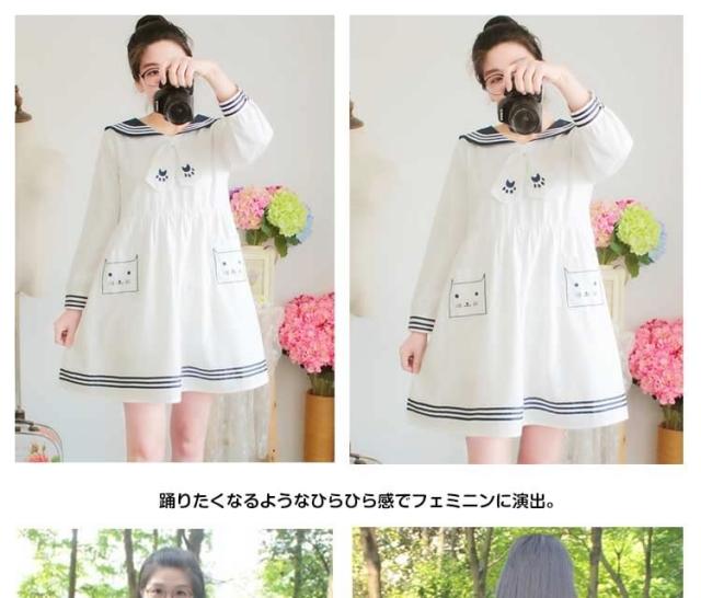 待望の長袖追加!マリン風 森ガール系 レディース ワンピース ワンピ