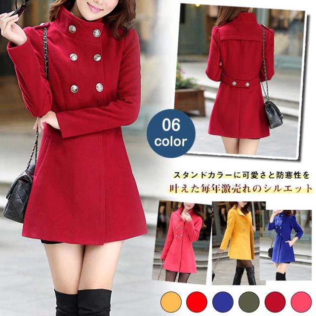 全6色 オンオフ問わず使える一押しのアウター♪コート ピーコート スタンドカラー ダブルボタン pコート トレンチ レディース ア