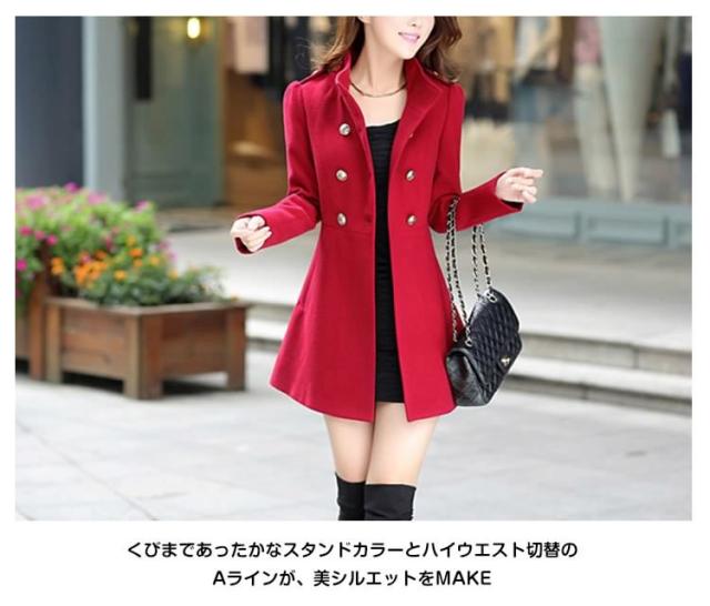 毎年激売れのシルエット!!Aラインコート スタンドカラー ウールタッチ あったか 防寒 レディース