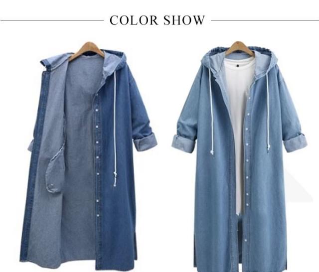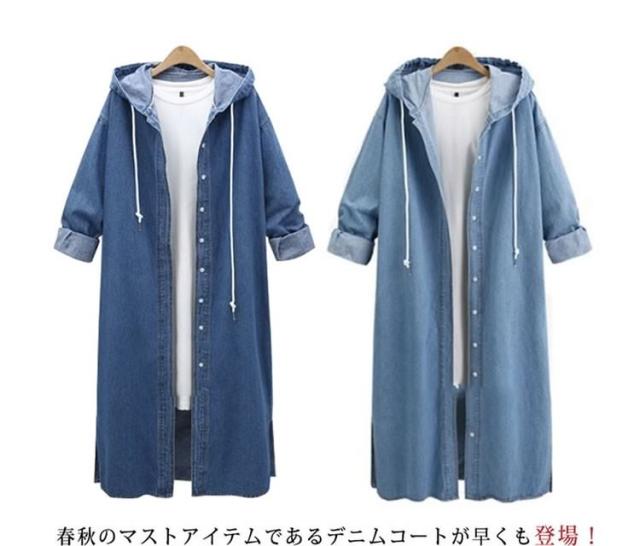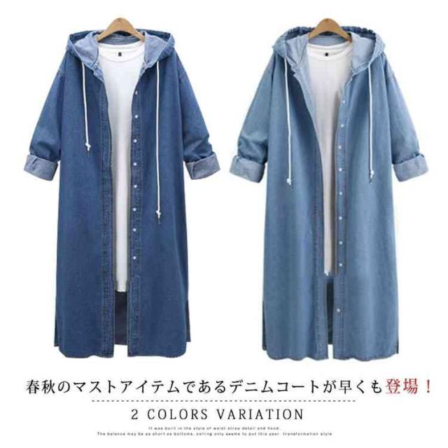 デニムコート デニムジャケット ロング丈 デニム ロングコート パーカー チェスターコート レディース フード付き デニムコート スプリングコート Gジャン アウター ジージャン ゆったり 羽織り