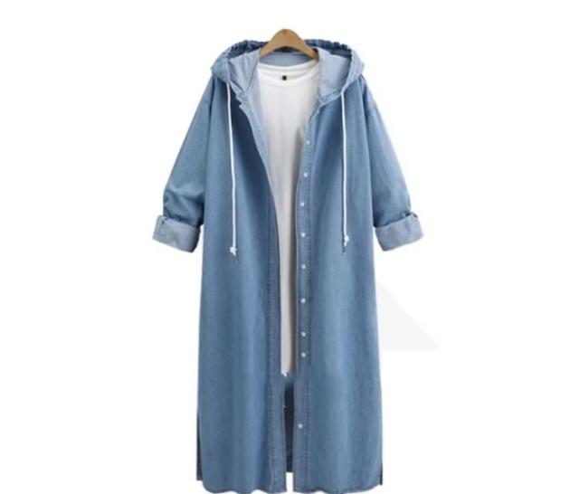 デニムコート デニムジャケット ロング丈 デニム ロングコート パーカー チェスターコート レディース フード付き デニムコート