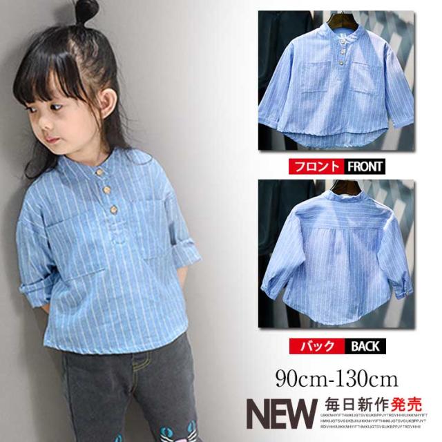 長袖シャツ 女の子 シャツ ストライブ柄