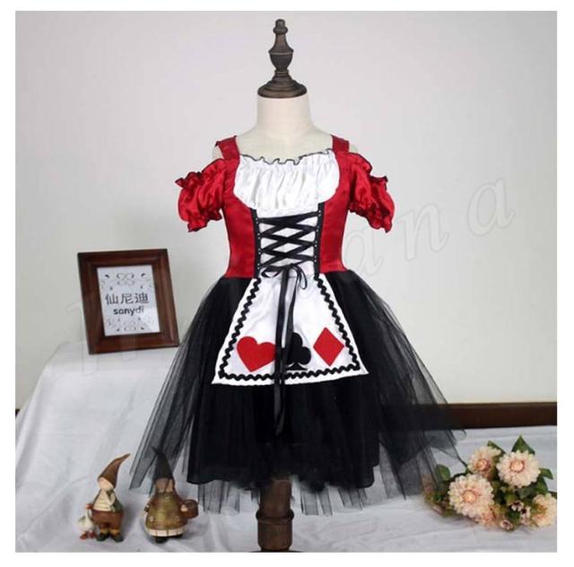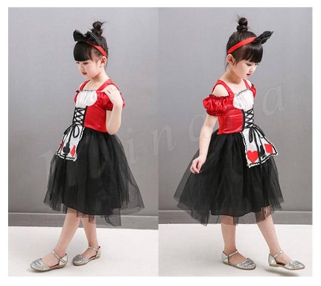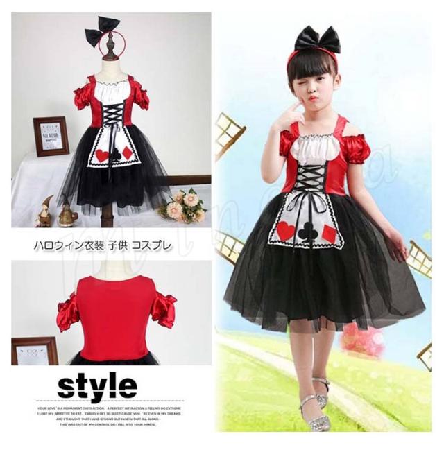 コスプレ メイド服 女の子 ハートの女王 キッズドレスプリンセス・黒/赤/コスチューム/コスプレ衣装/ハロウィン/ワンピース/コスプレ ふしぎの国のアリス 衣装?