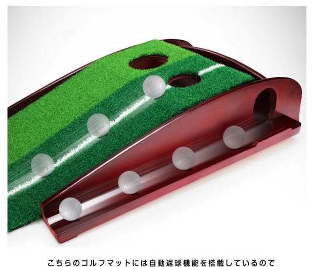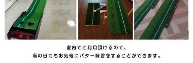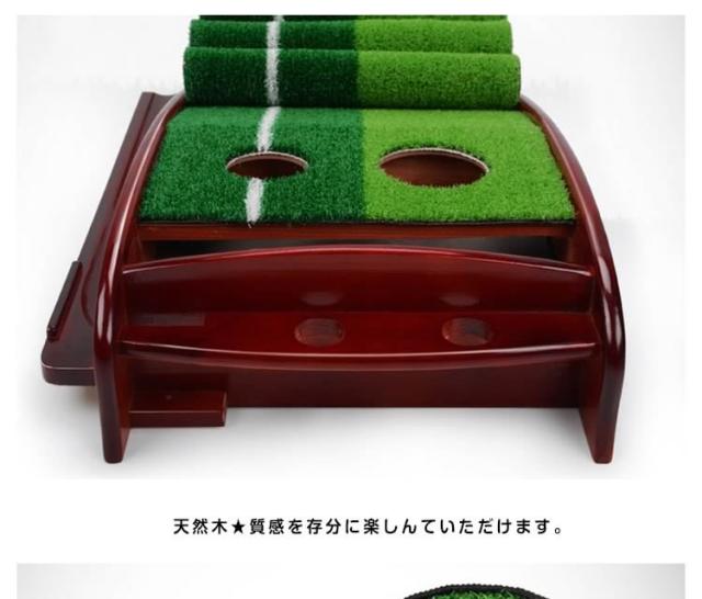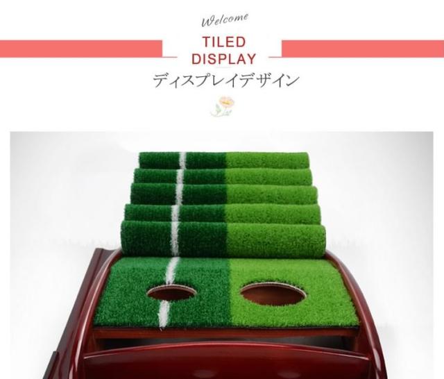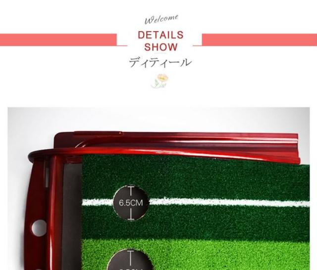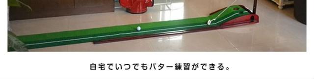 | 本格グリーン練習パターマット。自宅でいつでもパター練習ができる。室内でご利用頂けるので、雨の日でもお気軽にパター練習をすることができます。いつでもやりたい時にすぐに練習ができます。初心者の方でも人目を気にせず、しっかり練習が出来るのでうれしいですね。反復練習をすることにより、ご自宅でも感覚が身につけることができます。 | |