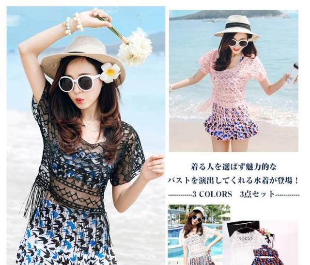 2017夏新作水着 水着 3点セット ハイウエスト 美脚 脚長 レディース みずぎ