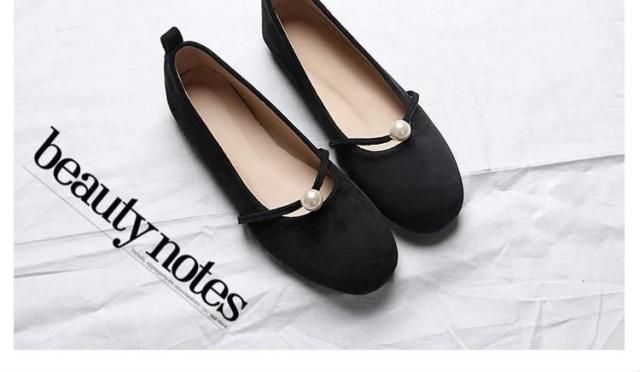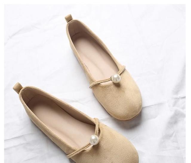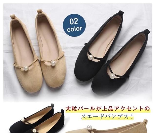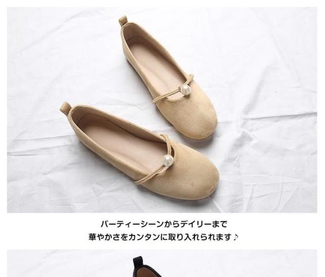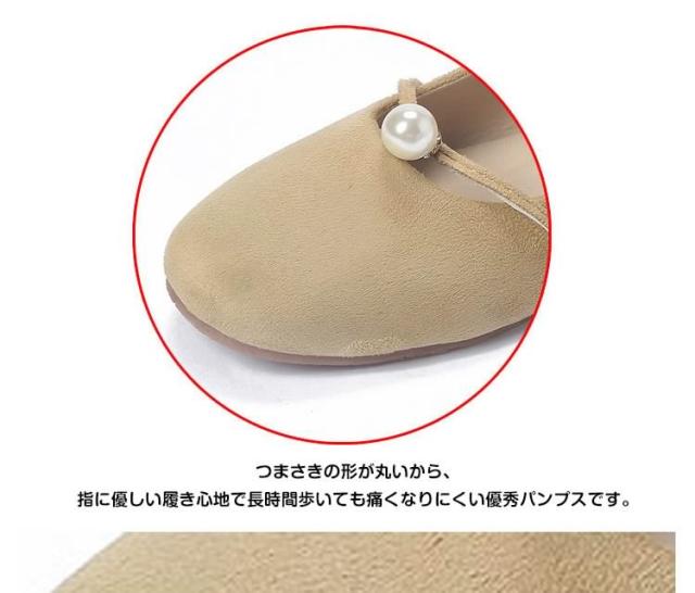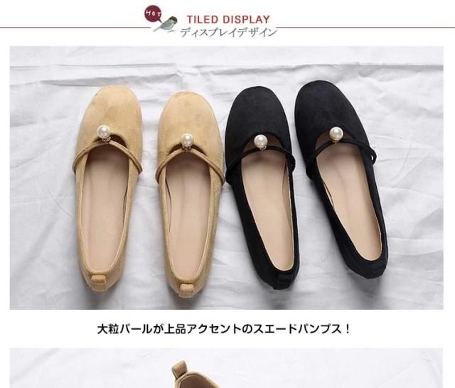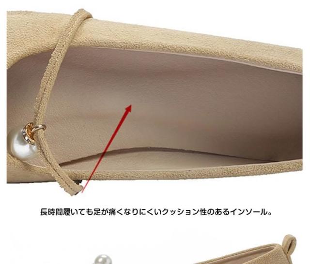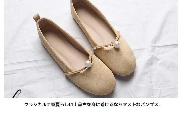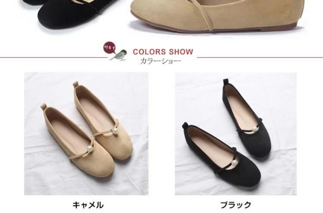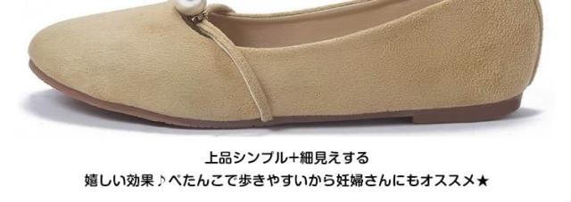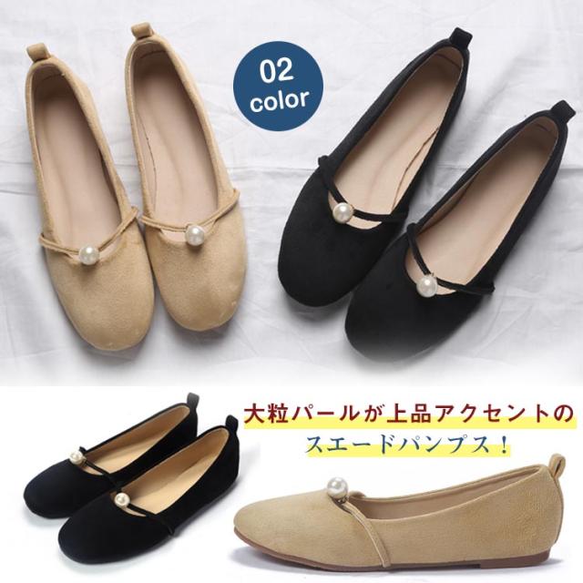 パール付き ラウンドトゥ パンプス スエードパンプス パンプス 痛くない ぺたんこ ぺたんこ靴 バレエシューズ フラットパンプス フラット