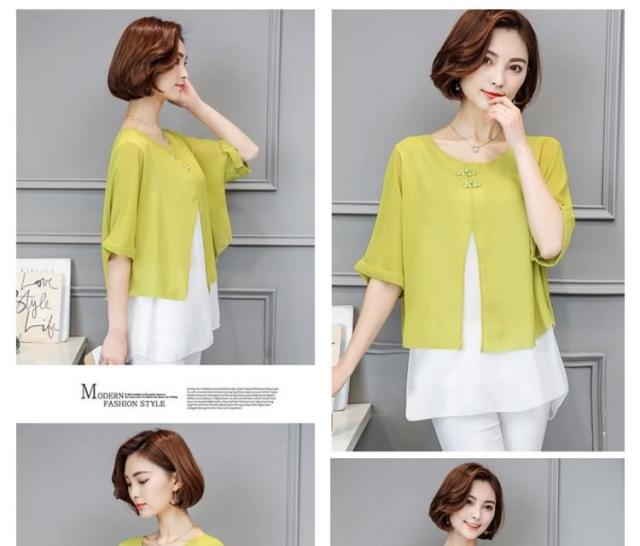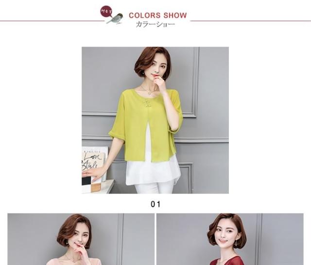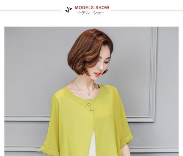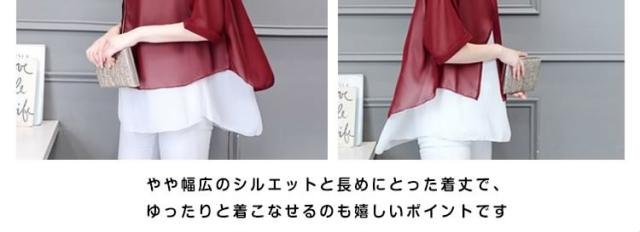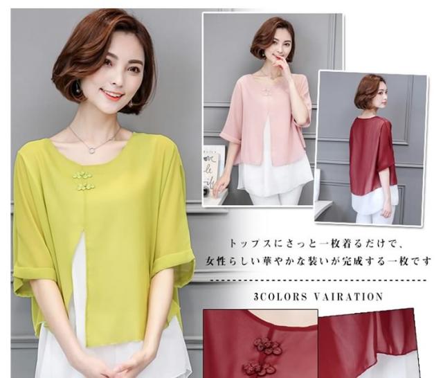 シフォントップス 重ね着風トップス 半袖tシャツ