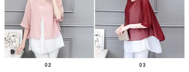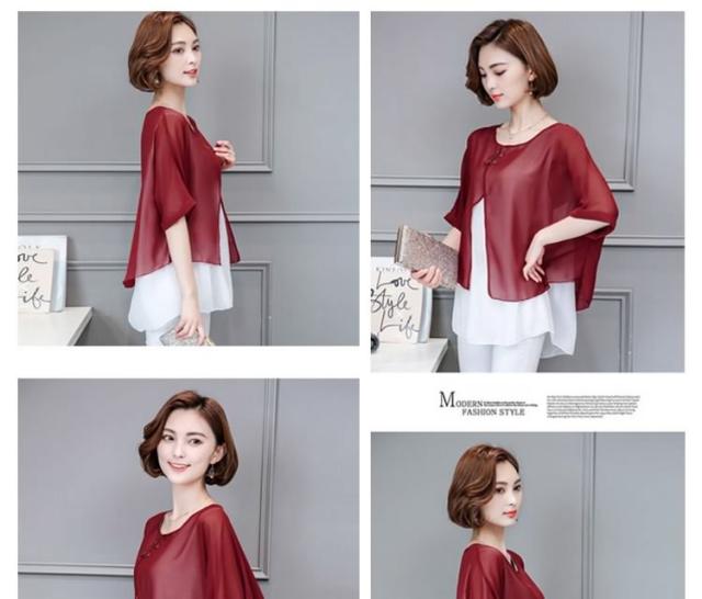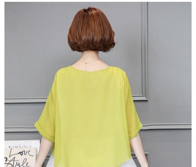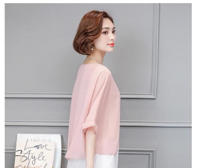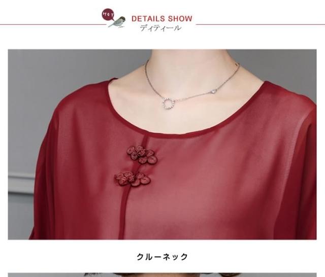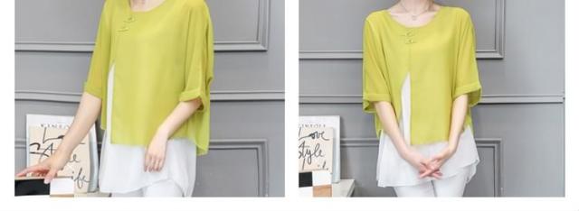 シフォントップス 重ね着風トップス 半袖tシャツ チュニック プルオーバー レイヤード 30代 40代 色切り替え 大きいサイズ レ