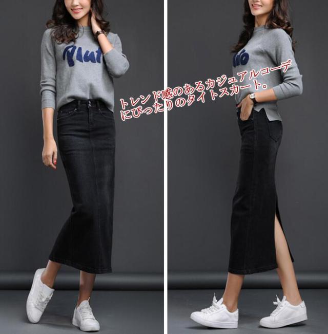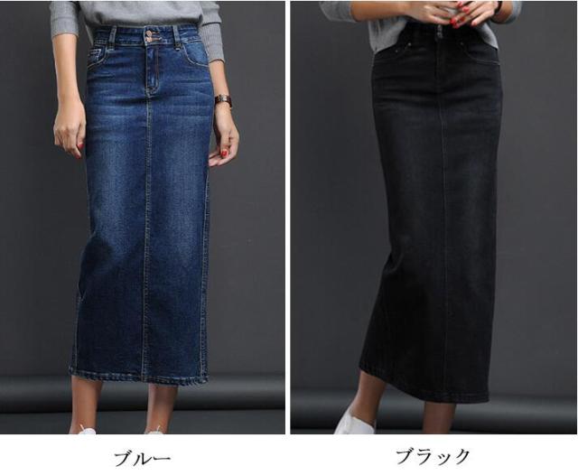デニム ペンシルスカート マキシ丈 ミモレ丈 レディース デニム マキシスカート デニム タイトスカート デニム スカート ロン