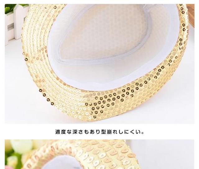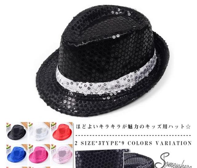 | ほどよいキラキラが魅力のキッズ用ハット☆ 女の子男の子問わず、かわいくおかぶりいただけますよ。☆ デイリーのおしゃれにはもちろん、ダンスコンテストにも★ | |