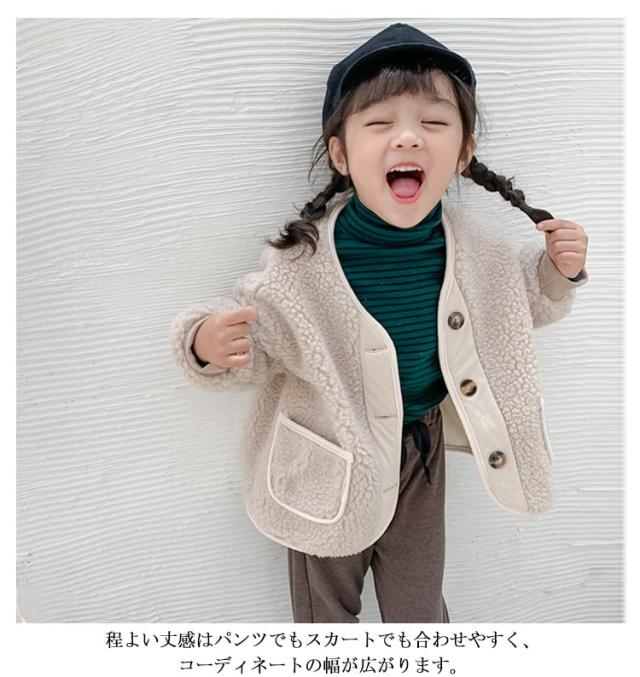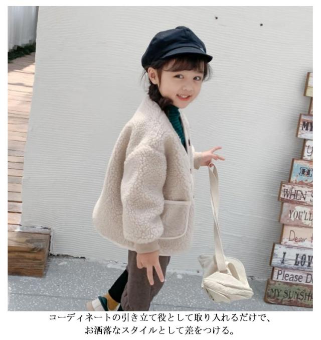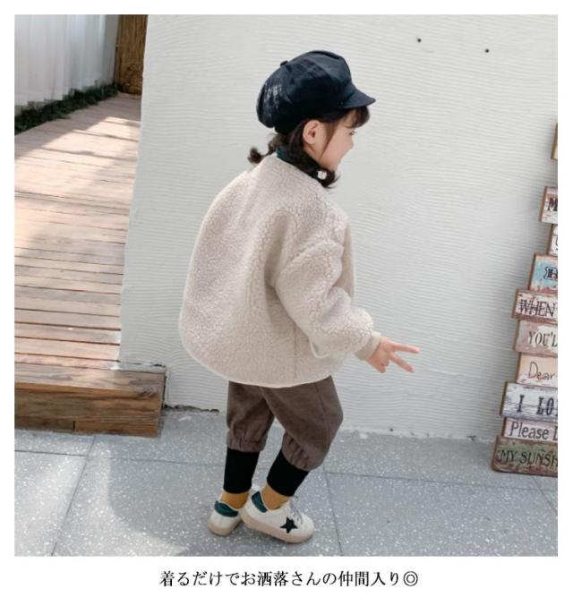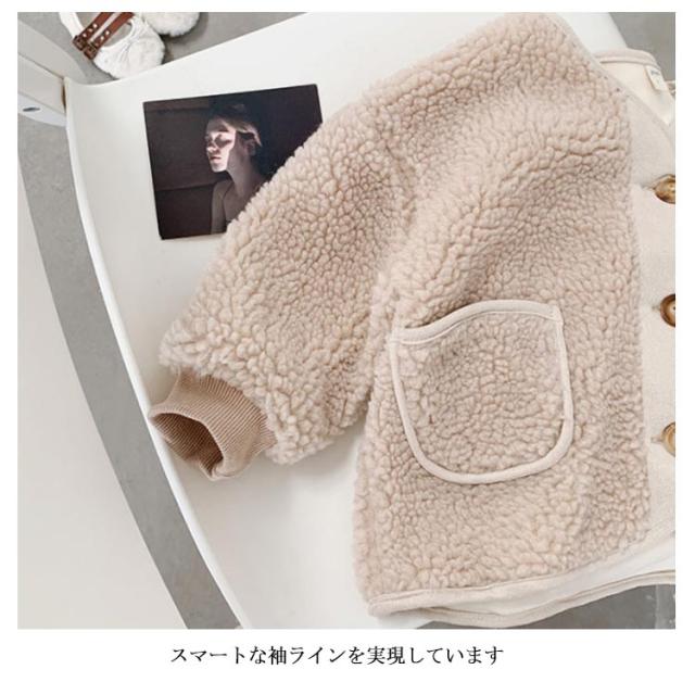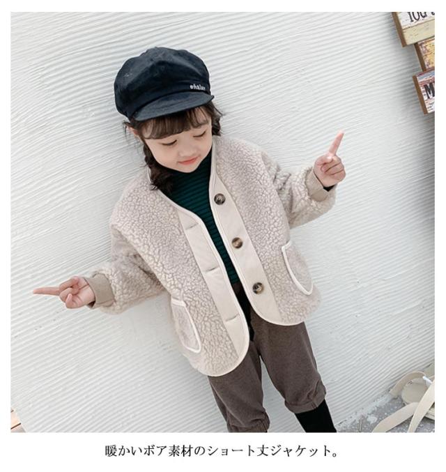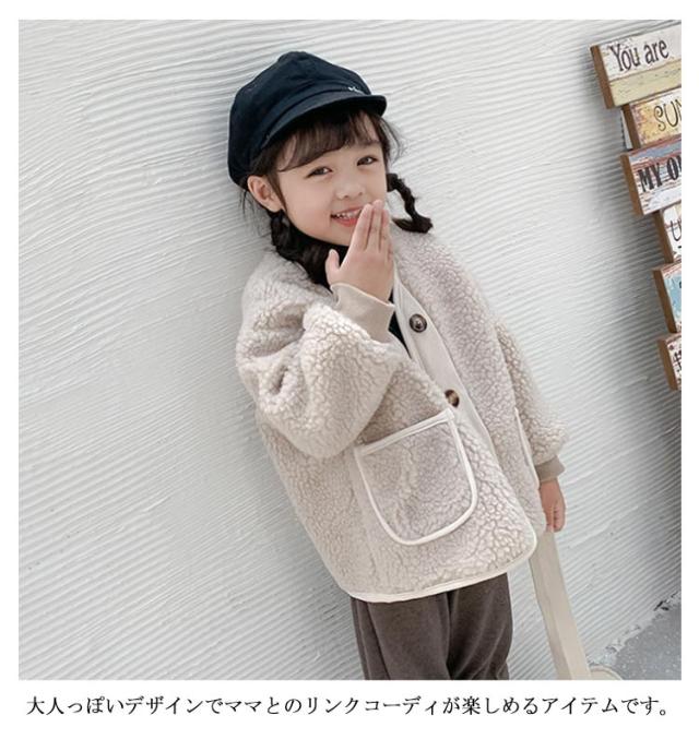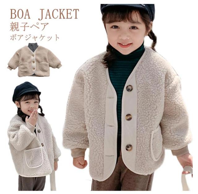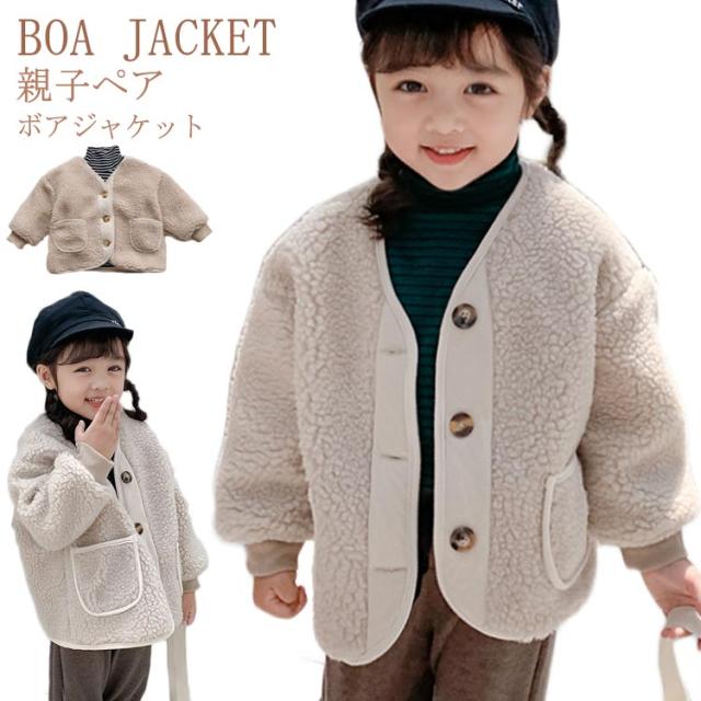 親子コーデ ノーカラー ボアジャケット ボアブルゾン 子供 キッズ 子供コート レディース ボア ジャケット ブルゾン ショート丈 コート アウター ボア フリースジャケット もこもこ 防寒 秋冬