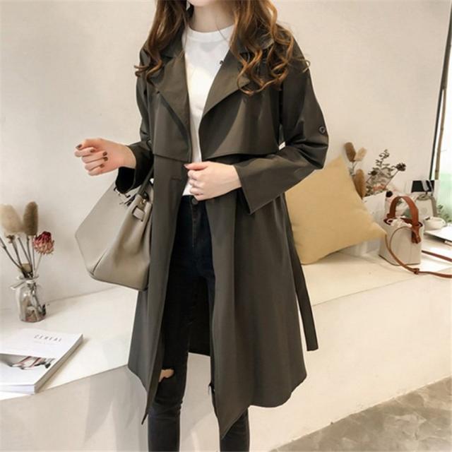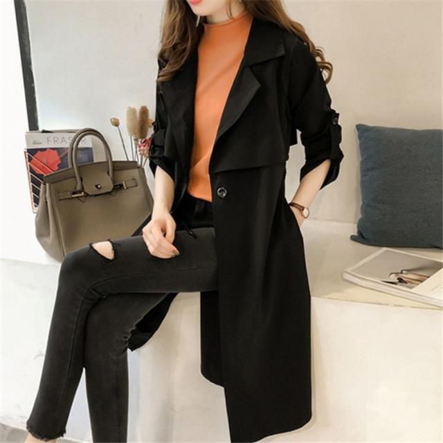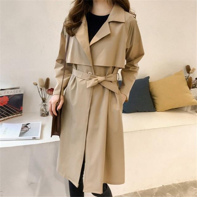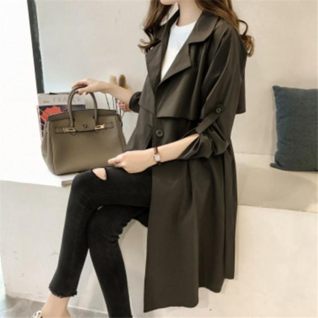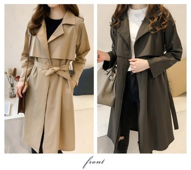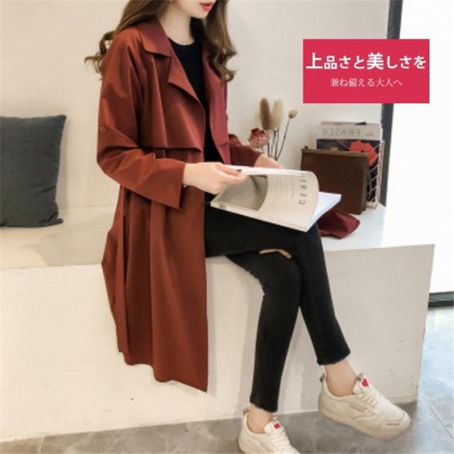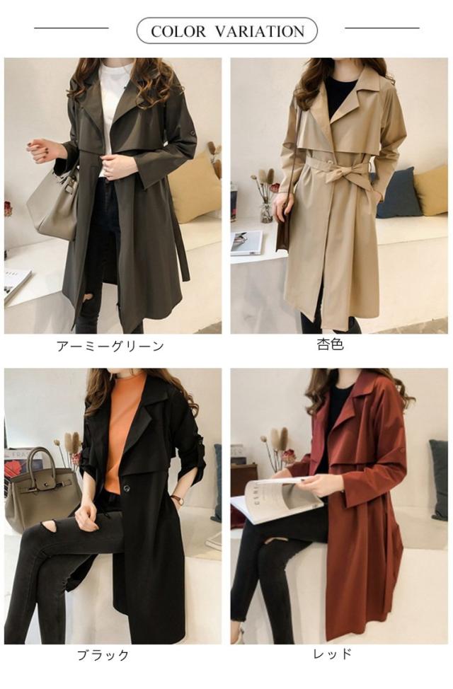 トレンチコート レディース ロング おしゃれ ロールアップスリーブ 長袖 リボン ベルト付き 大きいサイズ 薄手 軽い 春 スプリングコート アウター-P206