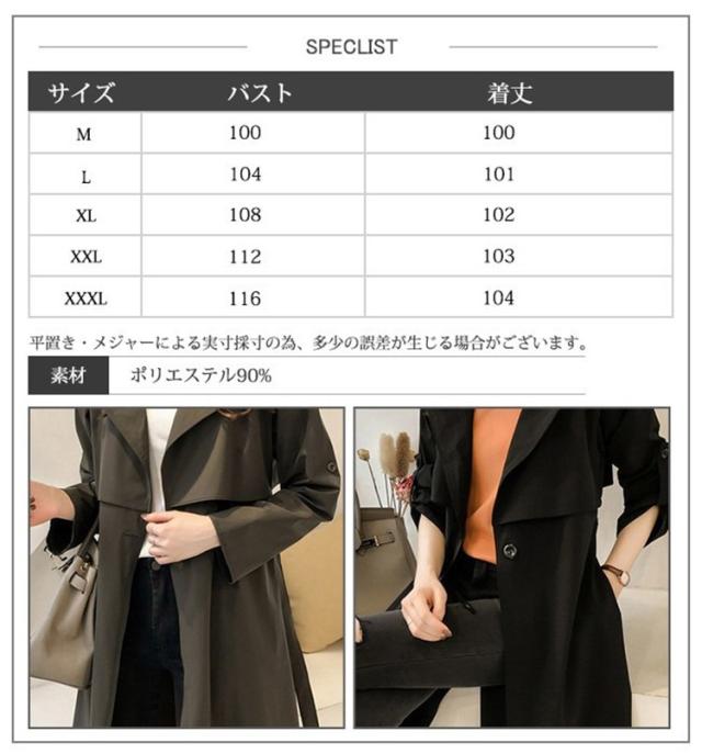 | サイズについての説明 | トレンチコート レディース ロング おしゃれ ロールアップスリーブ 長袖 リボン ベルト付き 大きいサイズ 薄手 軽い 春 スプリングコート アウター 商品説明 |