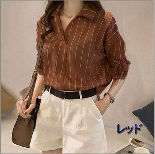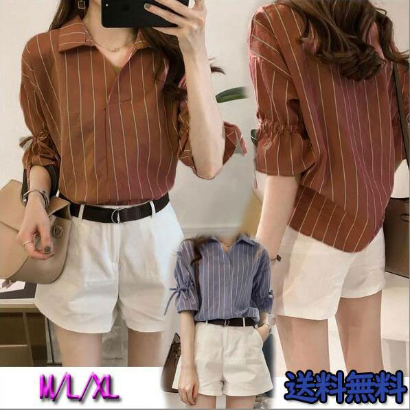 送料無料 シャツ ブラウス トップス レディース 半袖 前後差 Vネック オフィス 通勤 OL