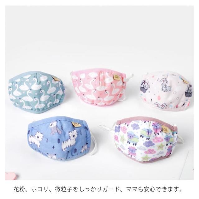 | 女の子にも男の子にも使える可愛らしいマスクです。裏にガーゼ素材を使用して、通気性が高く、呼吸がしやすい!花粉、ホコリ、微粒子をしっかりガード、ママも安心できます。豊富な花柄も展開して、色はランダムに発送する予定です。 | |