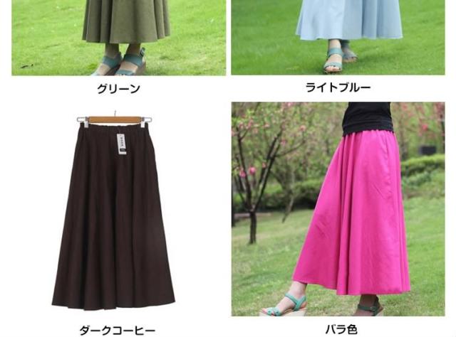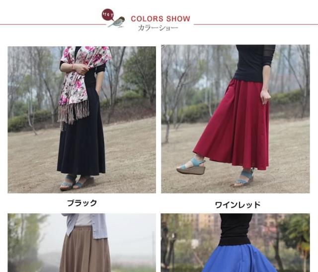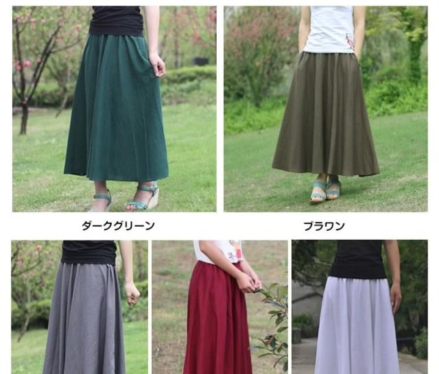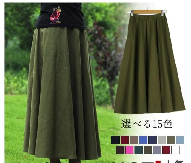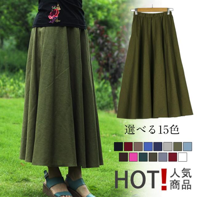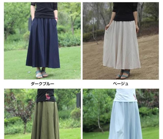 動くたびに歩く姿を印象的に演出!マキシスカート 綿麻スカート ロングスカート スカート 綿麻 コットンリネン マキシ ロング丈