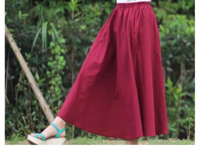 ふんわりと広がるフレアがかわいい綿麻マキシスカート
