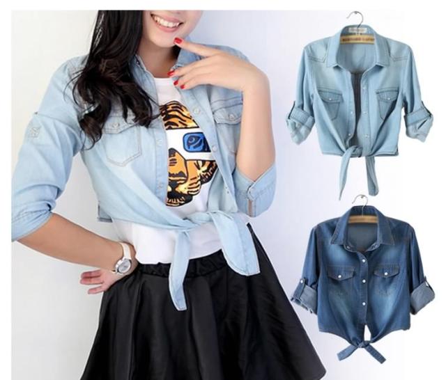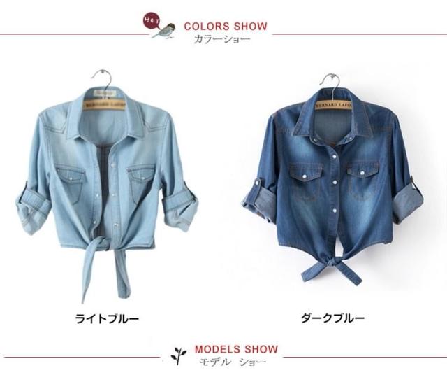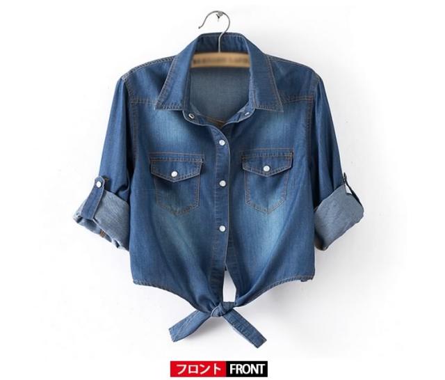 大人気!前結びシャツにデニムタイプ♪ デニムシャツ ショート 羽織り
