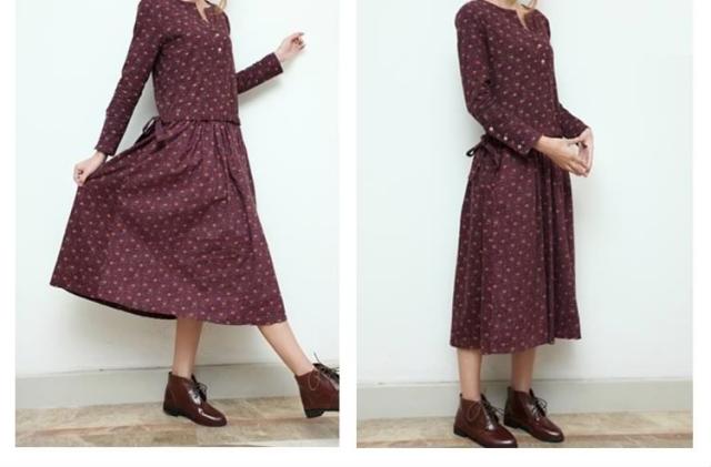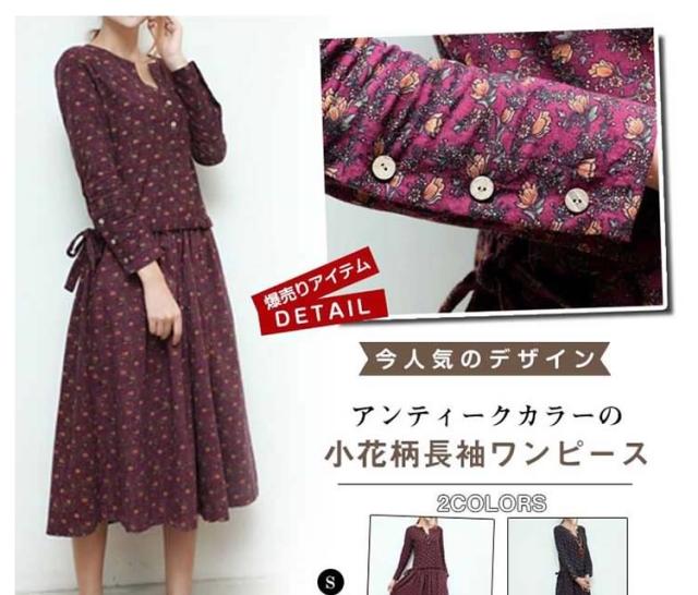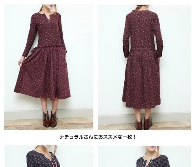 | アンティークカラーの小花柄長袖ワンピース ナチュラルさんにおススメな一枚!ふんわりとした軽いコットンに小花柄がかわいい☆ | |