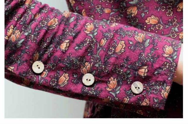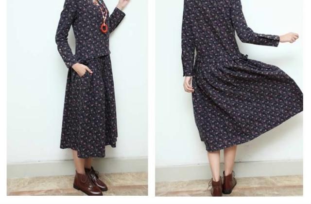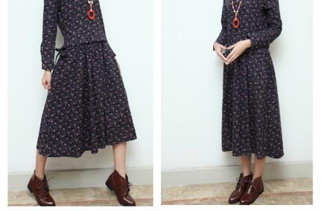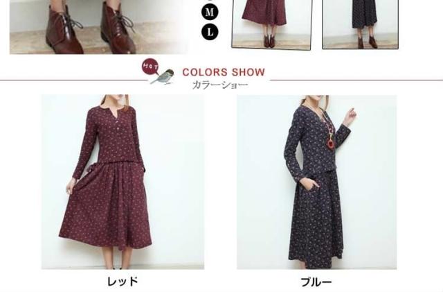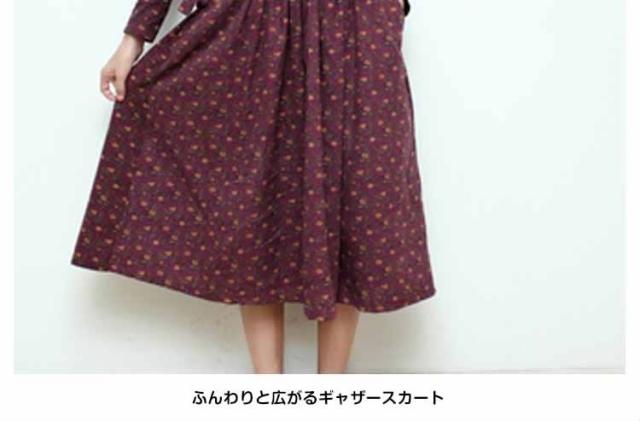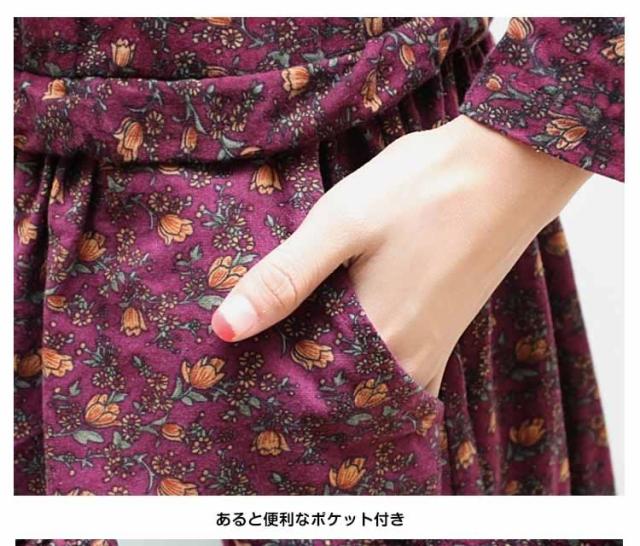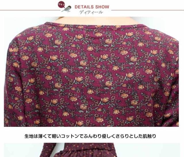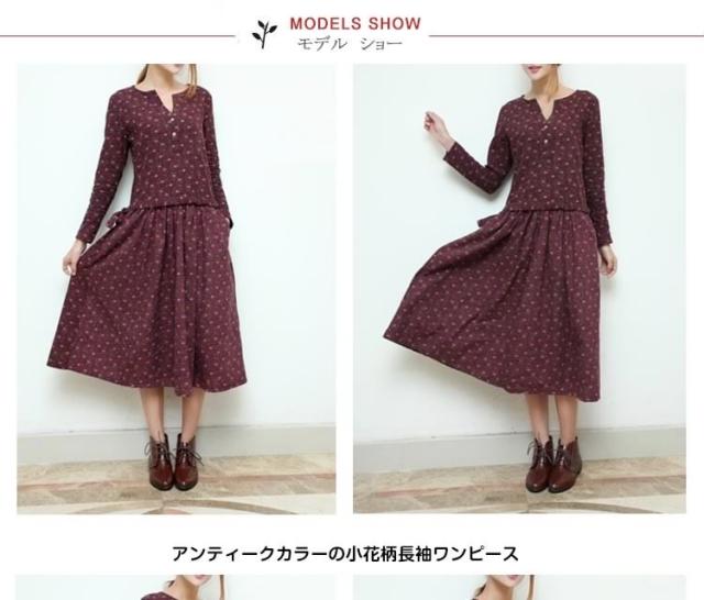 小花柄☆長袖ロングワンピース アンティークカラー 花柄 ワンピース ロング丈 コットンワンピース 長袖ワンピース 森ガール ナチ